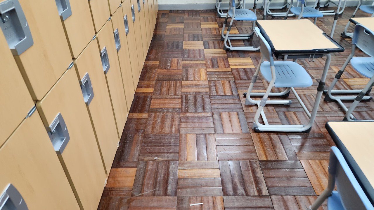 부산 정관고등학교 미세먼지청소 현장: 학교 바닥청소와 창틀먼지까지 꼼꼼하게