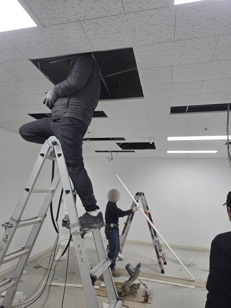현장을 처음 확인했을 때, 다행히 신규 설치만 놓고 보면 난이도가 높은 편은 아니었습니다. 층고가 어느 정도 확보되어 있었고, 천장 위 공간도 꽉 막혀 있지 않아 배관과 배선 동선을 짜기에는 비교적 수월한 구조였습니다.