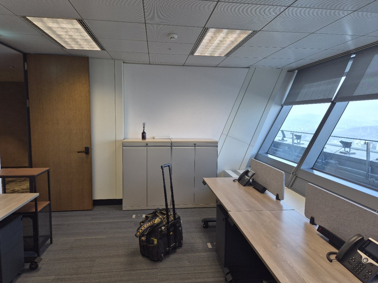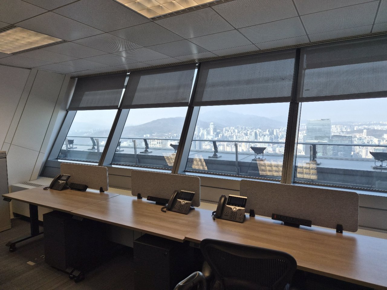 실제 시공 후에는 전체 공간이 한층 더 밝아진 느낌이었고, 시티뷰와 벽면이 잘 어우러지면서 사무실 특유의 깔끔한 분위기가 살아났습니다.