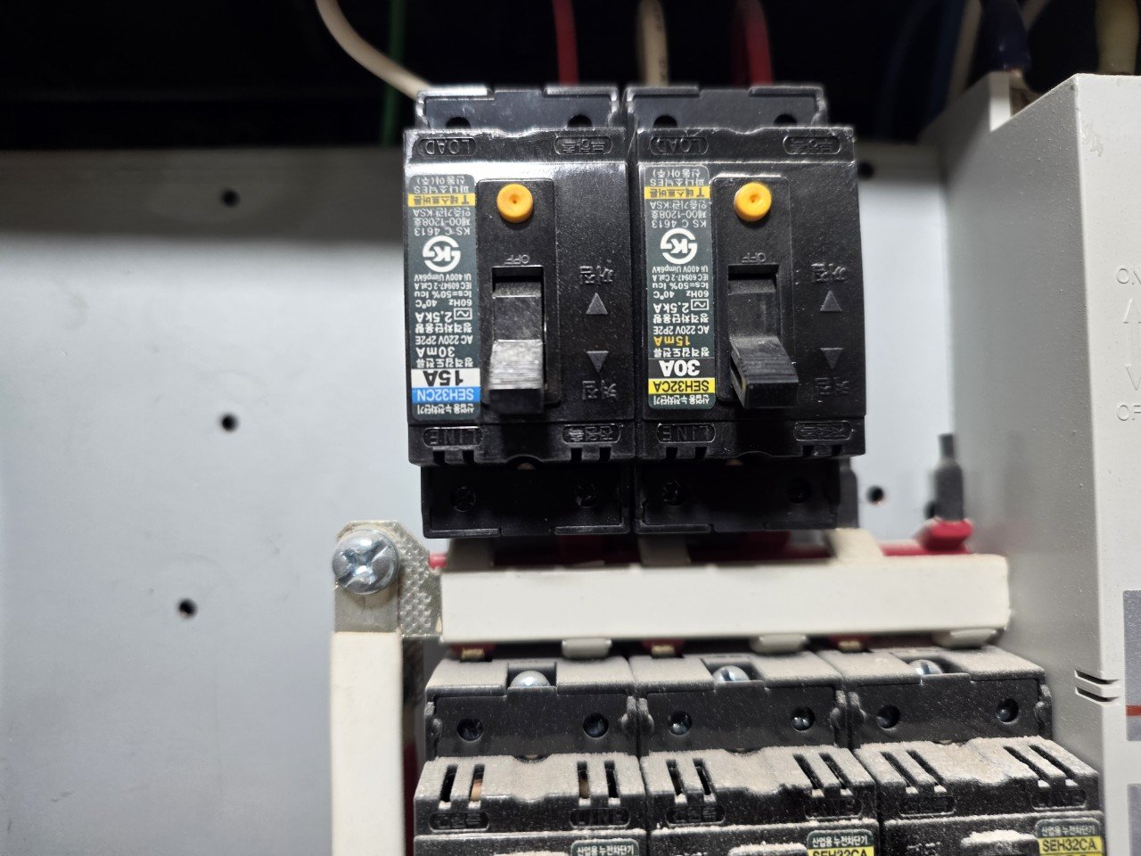이번 세곡동 현장에서는 분전반에서 에어컨 전용 30A 차단기를 사용해 독립 회로로 연결해 드렸습니다. 이렇게 시공하면 다른 가전제품과 전기 부하를 나눠 가질 수 있어, 차단기 트립이나 과부하로 인한 문제를 예방하는 데 도움이 됩니다.