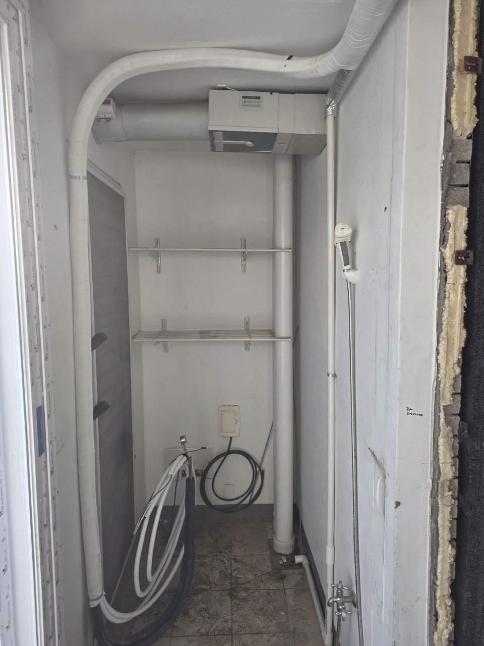 특히 공용 벽체를 통과해야 하는 구간은 소음과 외부 공기 유입을 막는 것이 중요하기 때문에, 메지와 폼으로 빈틈없이 막아 실내 쾌적함을 해치지 않도록 시공했습니다.