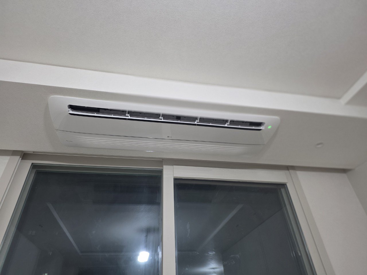 베란다에는 LG 전용 실외기를 설치해 드렸습니다. 세대 구조상 넓지 않은 공간에 실외기를 두어야 했기 때문에, 통풍에 문제가 없도록 벽과 충분한 간격을 두고 배치하는 것이 핵심이었습니다.
