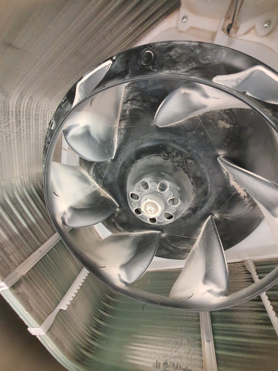 이런 미세 분진들이 열교환기 사이사이, 팬 날개, 드레인 주변에 들러붙듯 쌓이면, 시간이 지나면서 딱딱하게 굳거나 눌어붙어 일반적인 필터 세척만으로는 절대 해결이 되지 않습니다.