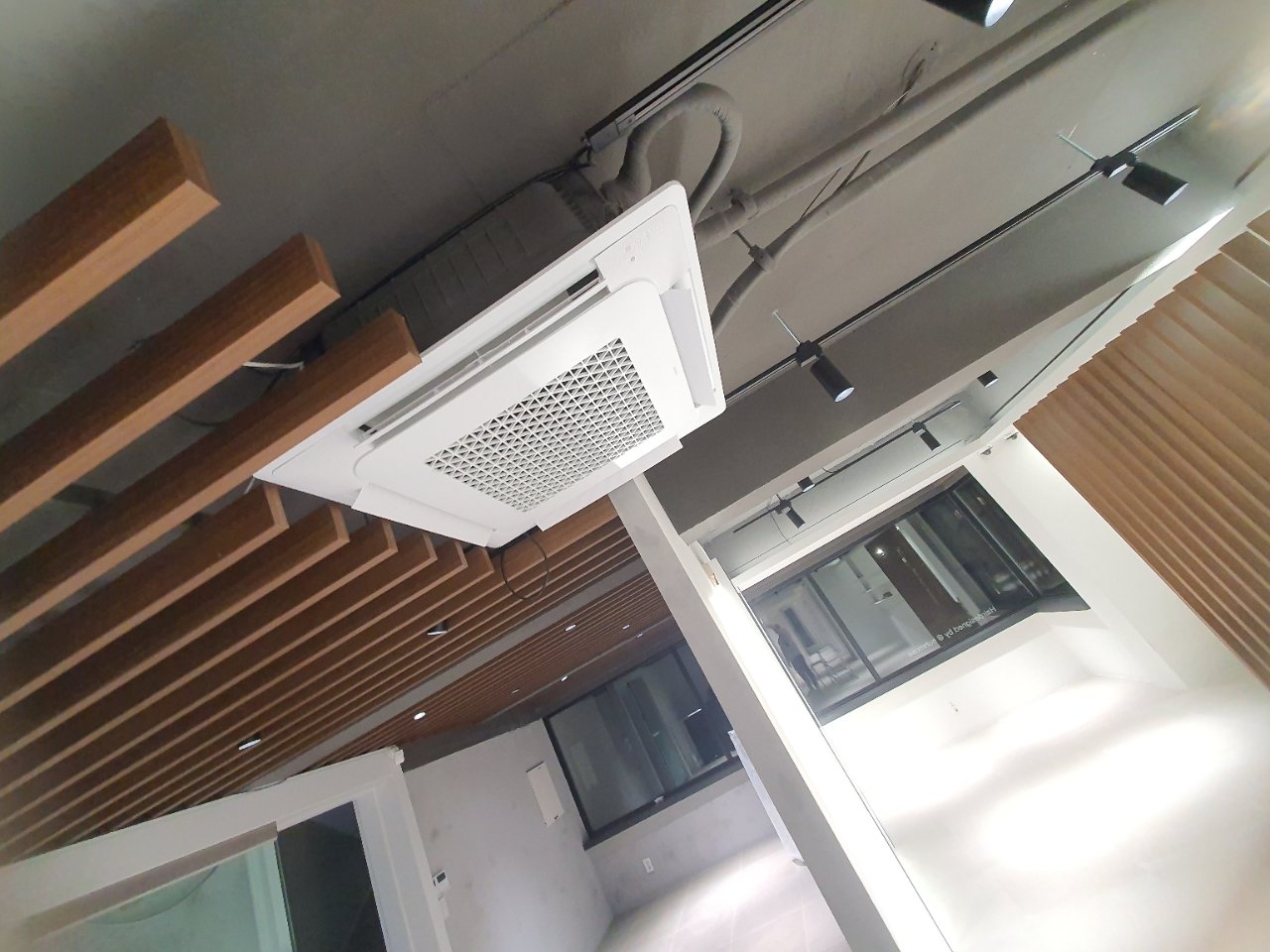 - 천장형 에어컨이 공사 기간 동안 그대로 노출되어 있었던 경우