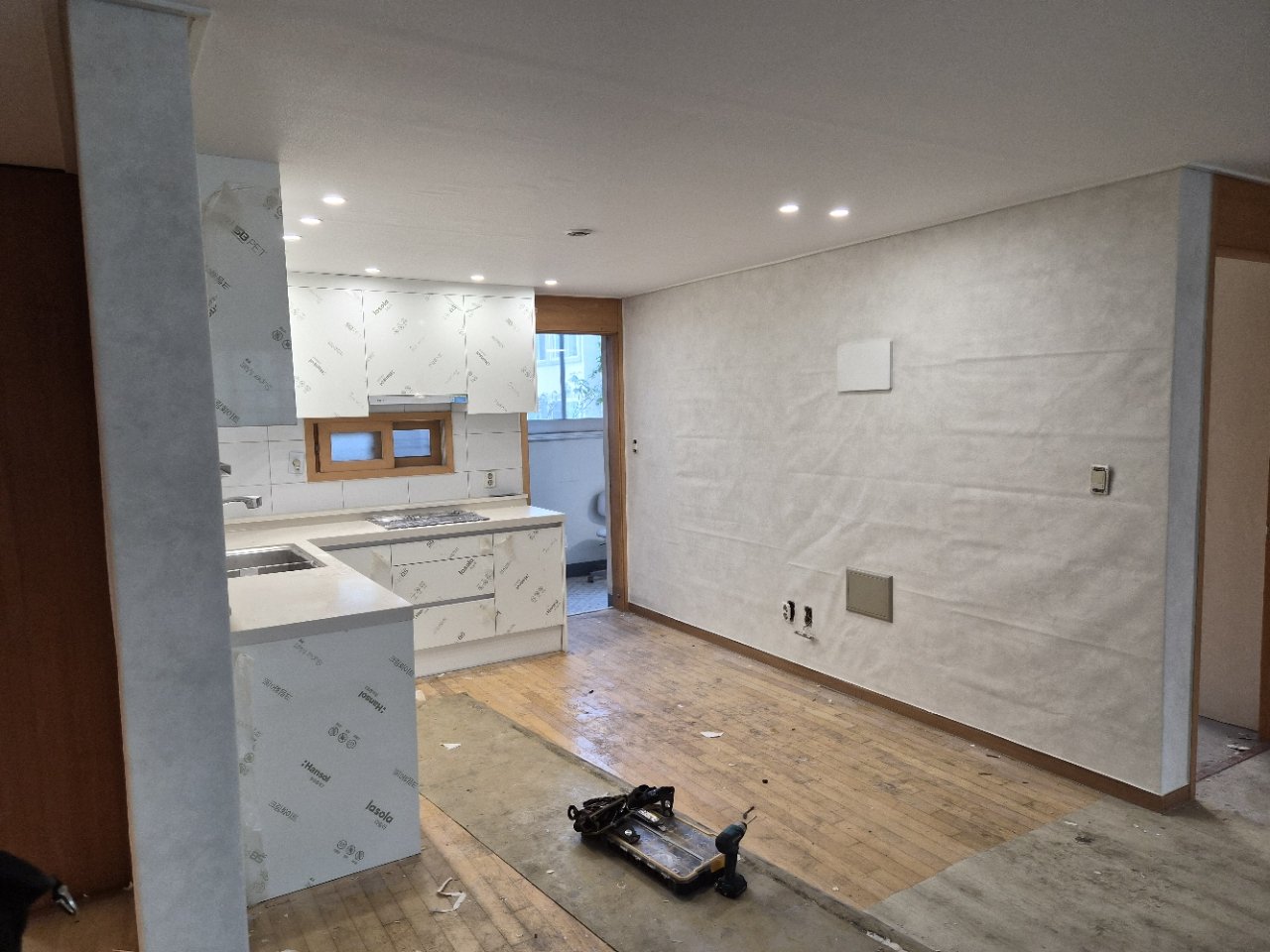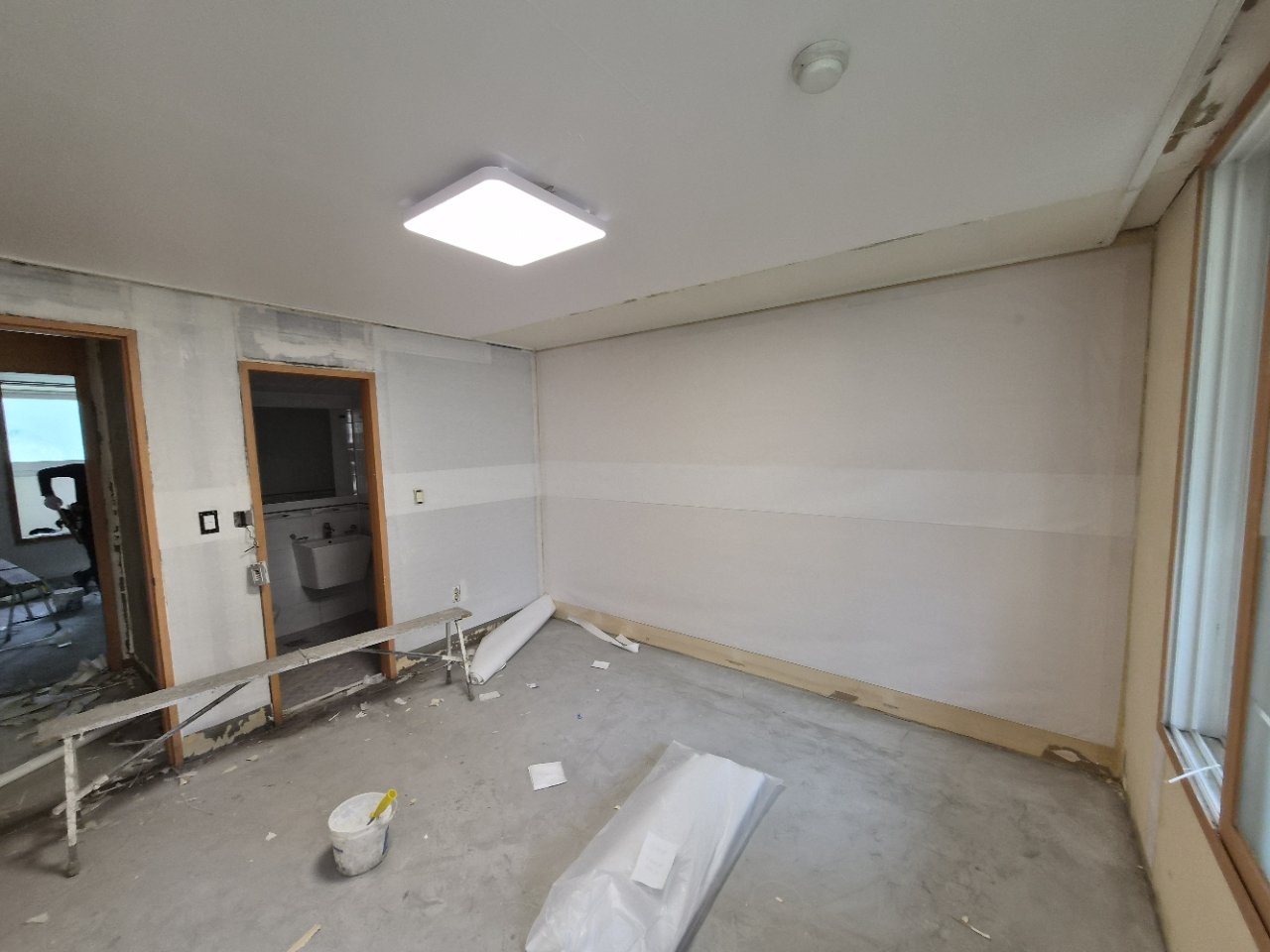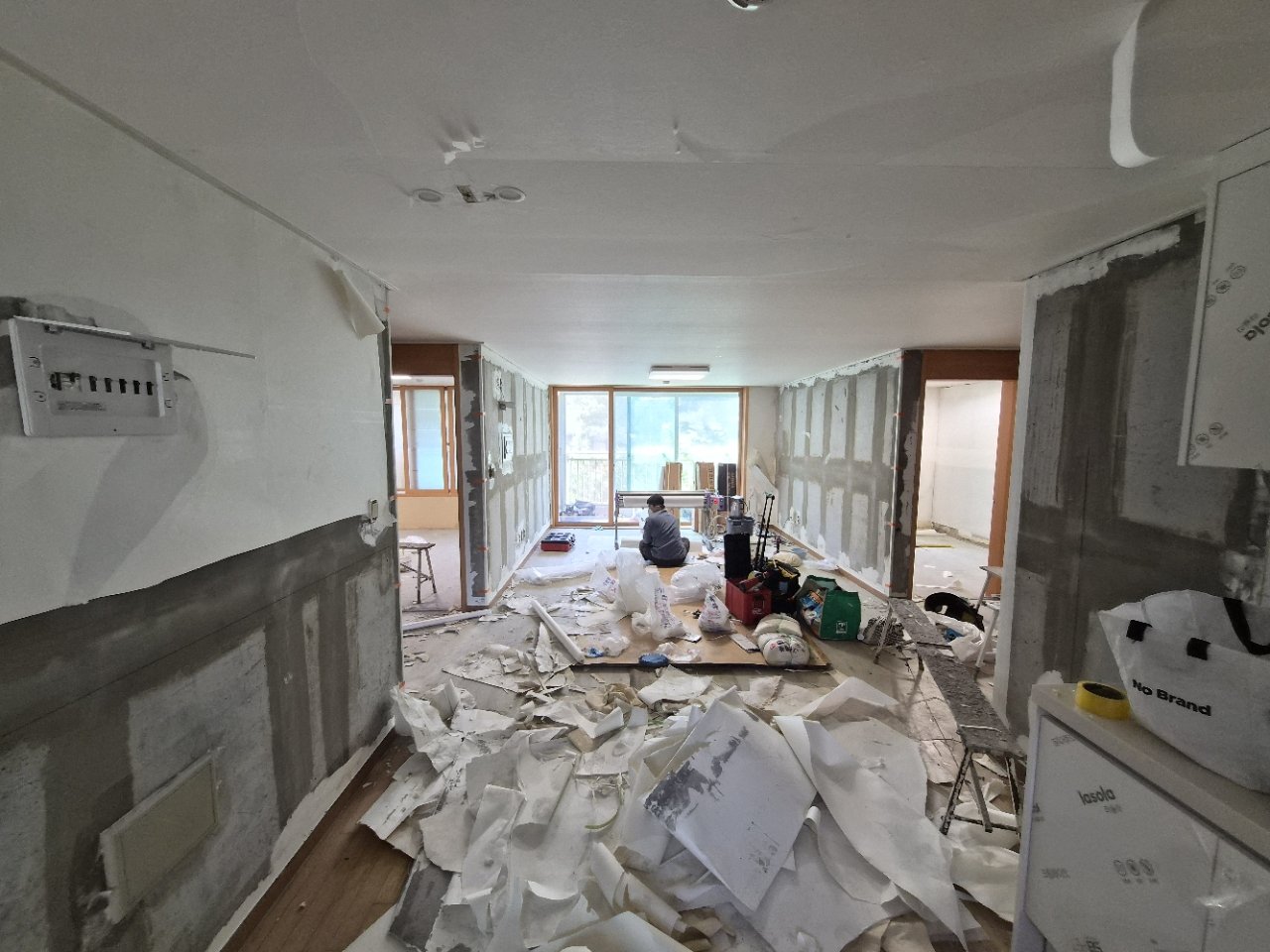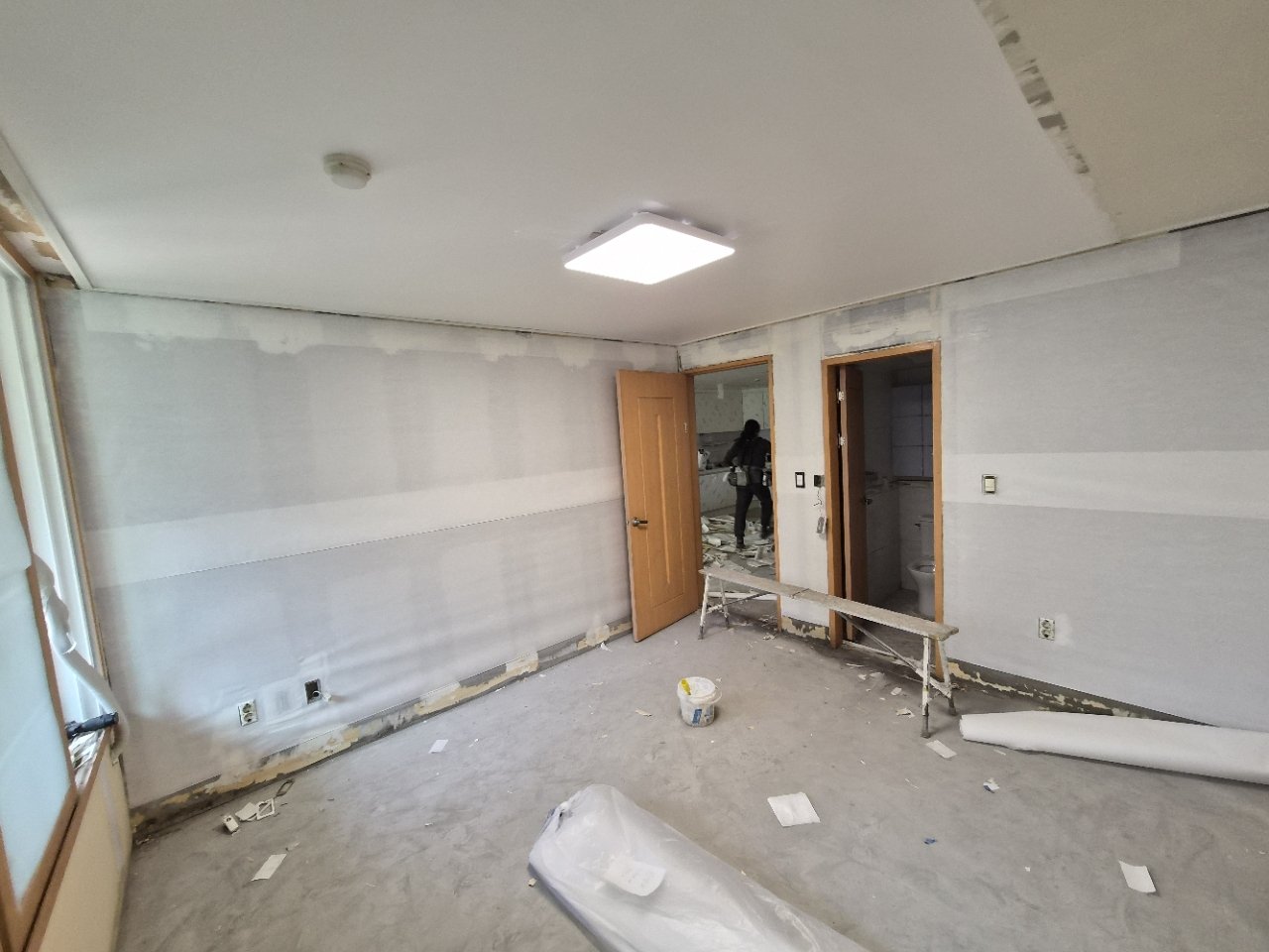 철거를 진행해보니 예상보다 폐기물도 적지 않았습니다. 50리터 봉투 기준으로 13봉지가 나올 정도였는데, 그만큼 오래된 마감층이 여러 겹 남아 있거나 바탕 상태가 고르지 않았다는 뜻이기도 합니다. 이 과정을 대충 지나가면 도배 직후에는 괜찮아 보여도 시간이 지나면서 들뜸이나 표면 울음이 생길 수 있어 처음 단계부터 꼼꼼하게 살피는 것이 중요합니다.