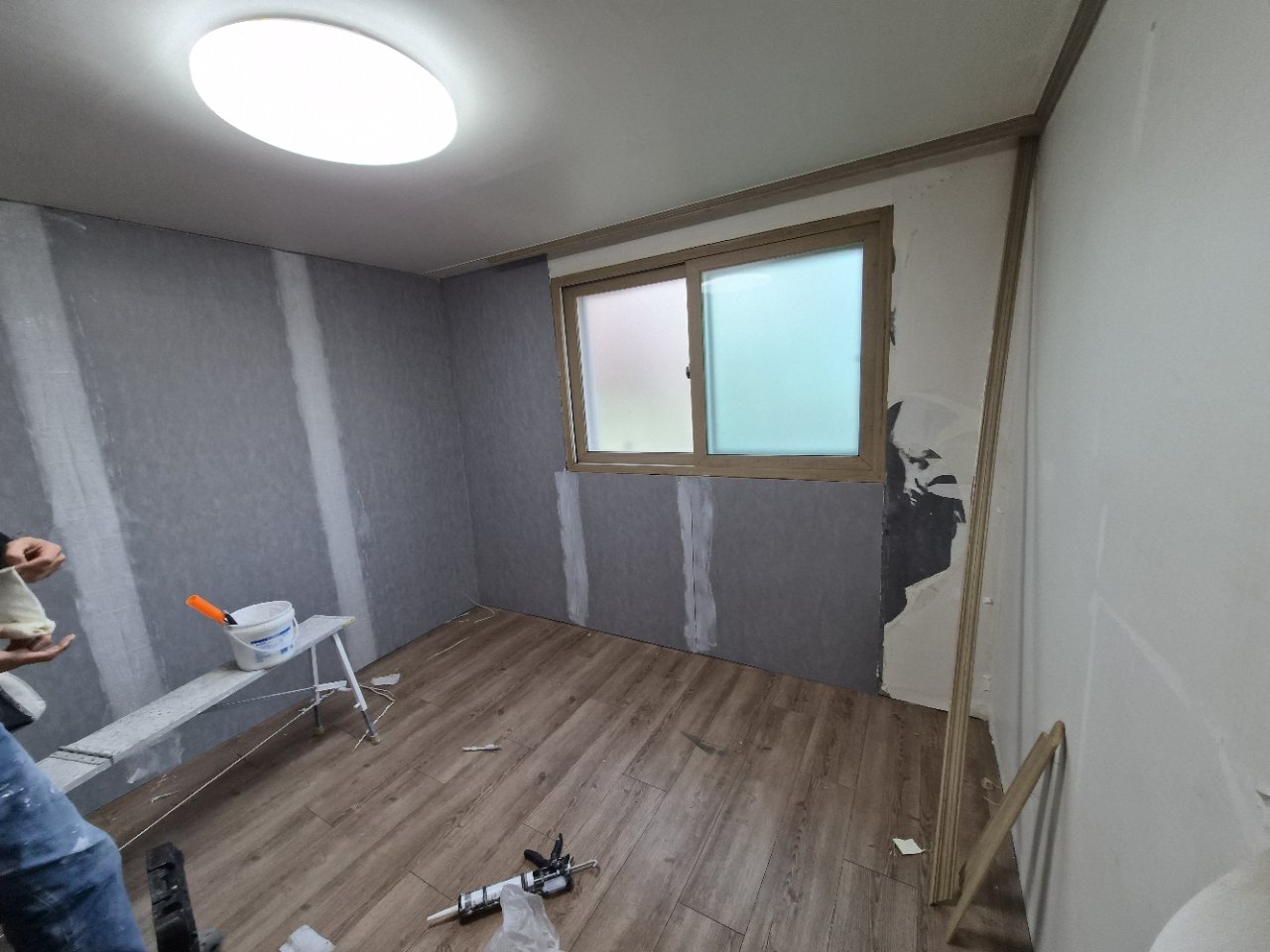 화이트 계열 실크벽지는 빛을 잘 반사해 주기 때문에, 실제 면적보다 공간이 넓어 보이는 효과가 있습니다. 그래서 빌라나 소형 평형대에서는 특히 만족도가 높은 편입니다. 이번 성내동 투룸빌라 현장에서도 전체적으로 깨끗하고 정돈된 느낌이 강조되면서, 거주하실 분 입장에서도 훨씬 쾌적하게 느껴지실 만한 분위기로 완성되었습니다.