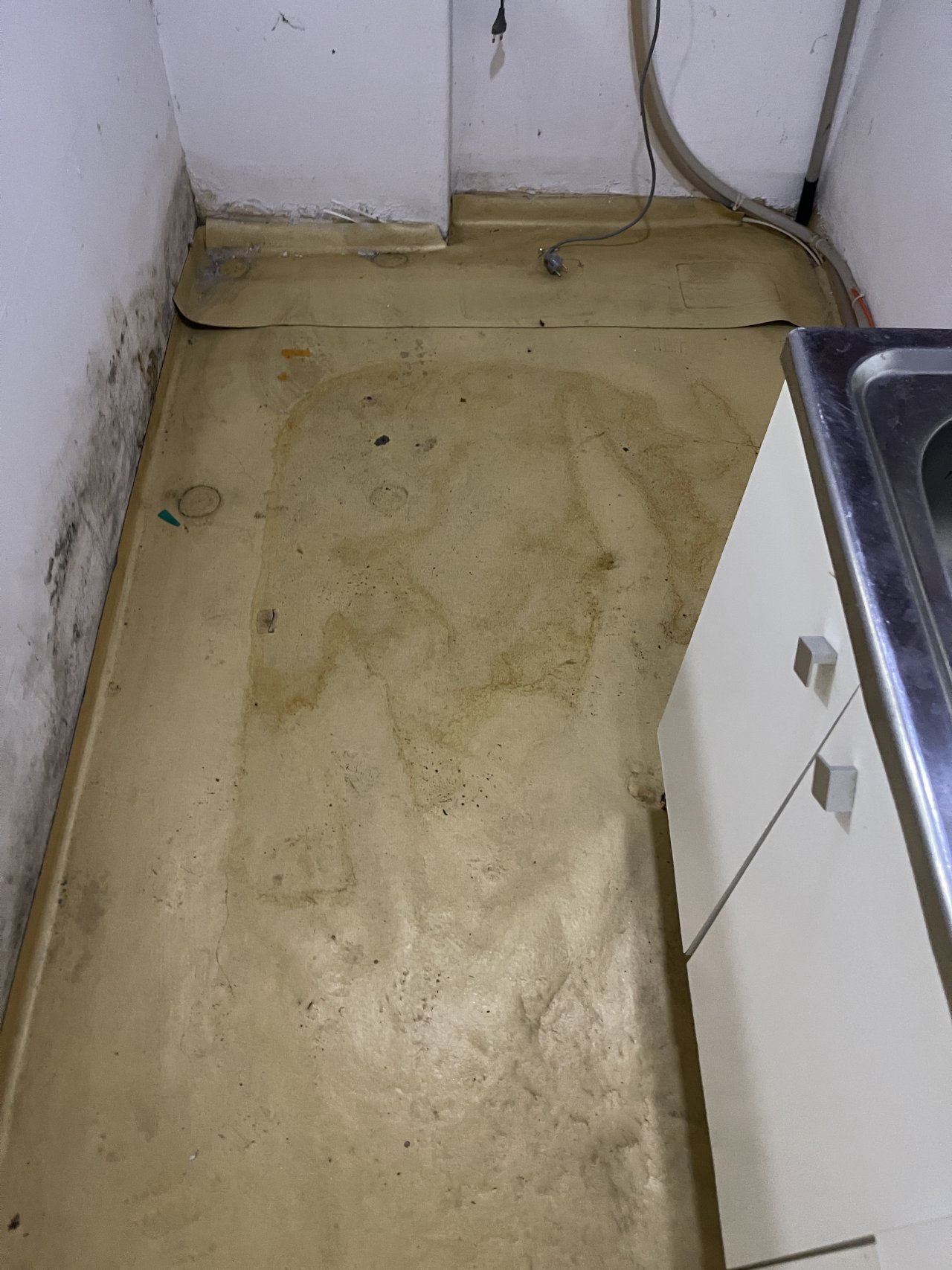 화장실은 곰팡이 번식과 변기 내부 요석이 눈에 띄었고, 배수구 주변의 오염도 적지 않았습니다. 바닥은 미용실 샴푸대가 있던 자리의 실리콘 잔여물이 그대로 남아 발에 걸릴 정도였어요. 다용도실 겸 주방 공간은 오염도가 가장 높았습니다. 싱크대 하부에 때가 심했고 바닥엔 벌레 사체가 널려 있었죠. 환풍기는 기름때와 먼지가 겹겹이 쌓여 정상 작동이 어려운 상태였습니다.