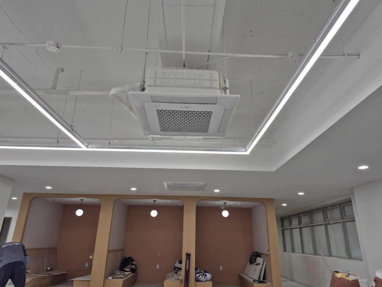 특히 여러 에어컨 실내기가 한 공간에 모이는 구조에서는 배관과 배수 라인이 얽히기 쉽기 때문에, 각 설비별로 이동 경로를 미리 계획하고, 나중에 다른 공정에서 문제없이 접근할 수 있도록 공간을 확보해 두는 것이 중요합니다.
