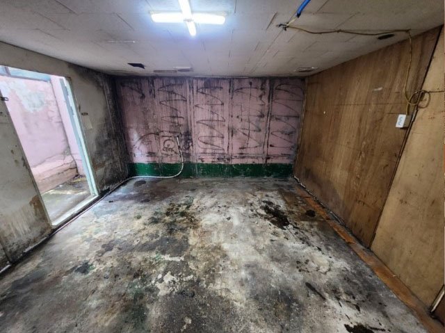창고 바닥과 벽면에는 장기간 사용으로 인한 얼룩과 습기 자국이 남아 있었기 때문에, 철거 작업 후 남은 큰 오염물과 이물질을 정리해 공간이 한눈에 더 깨끗해 보이도록 마무리했습니다.