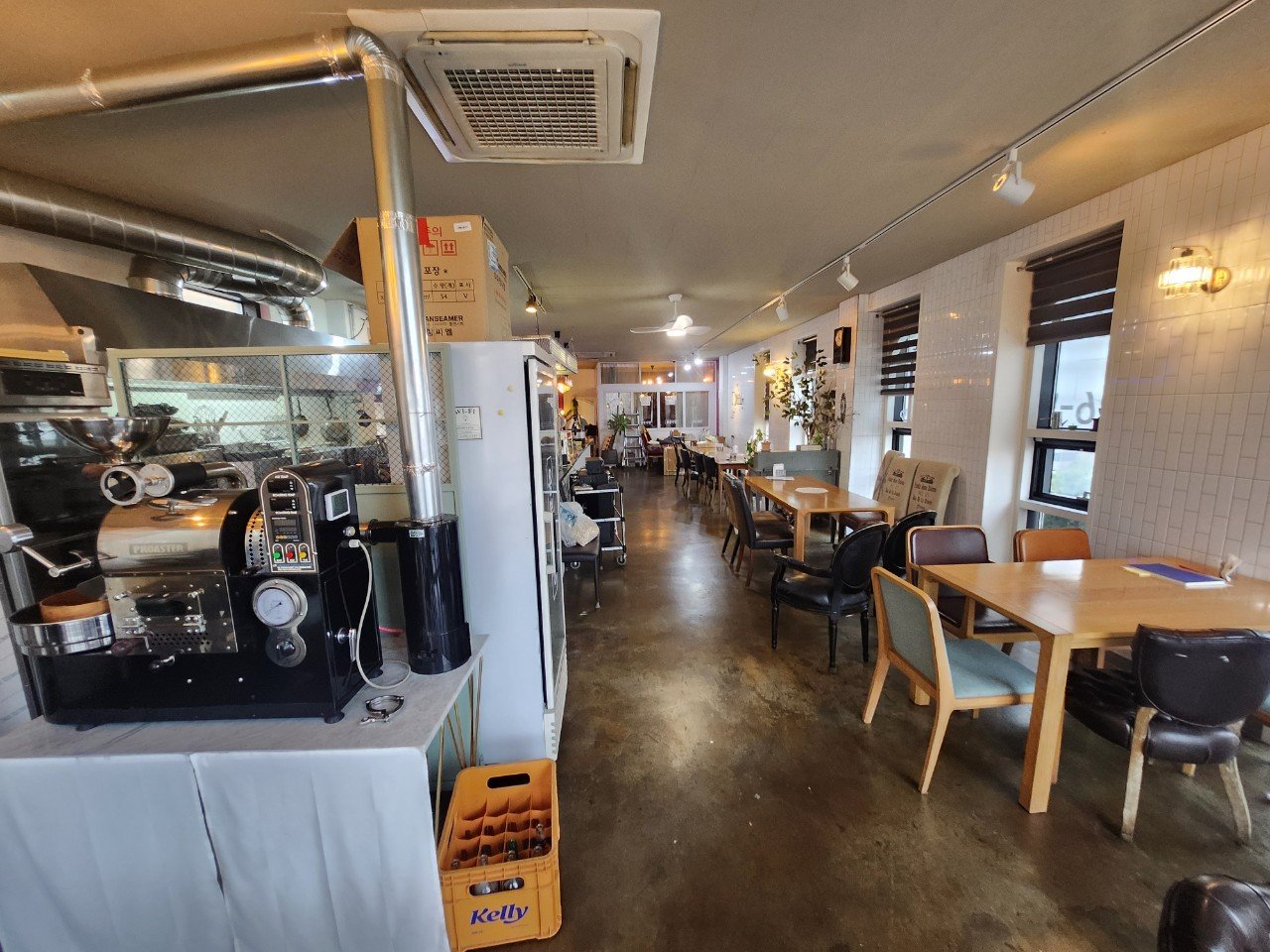 이번에 정리한 용봉동 카페는 홀이 길게 이어진 구조에 좌석 수가 많은 편이었습니다. 주방에는 각종 조리기구와 냉장·냉동 장비, 에스프레소 머신, 로스터기까지 갖춰져 있어 일반 카페보다 장비 구성이 탄탄한 곳이었고, 그만큼 정리해야 할 물건도 상당했습니다.
