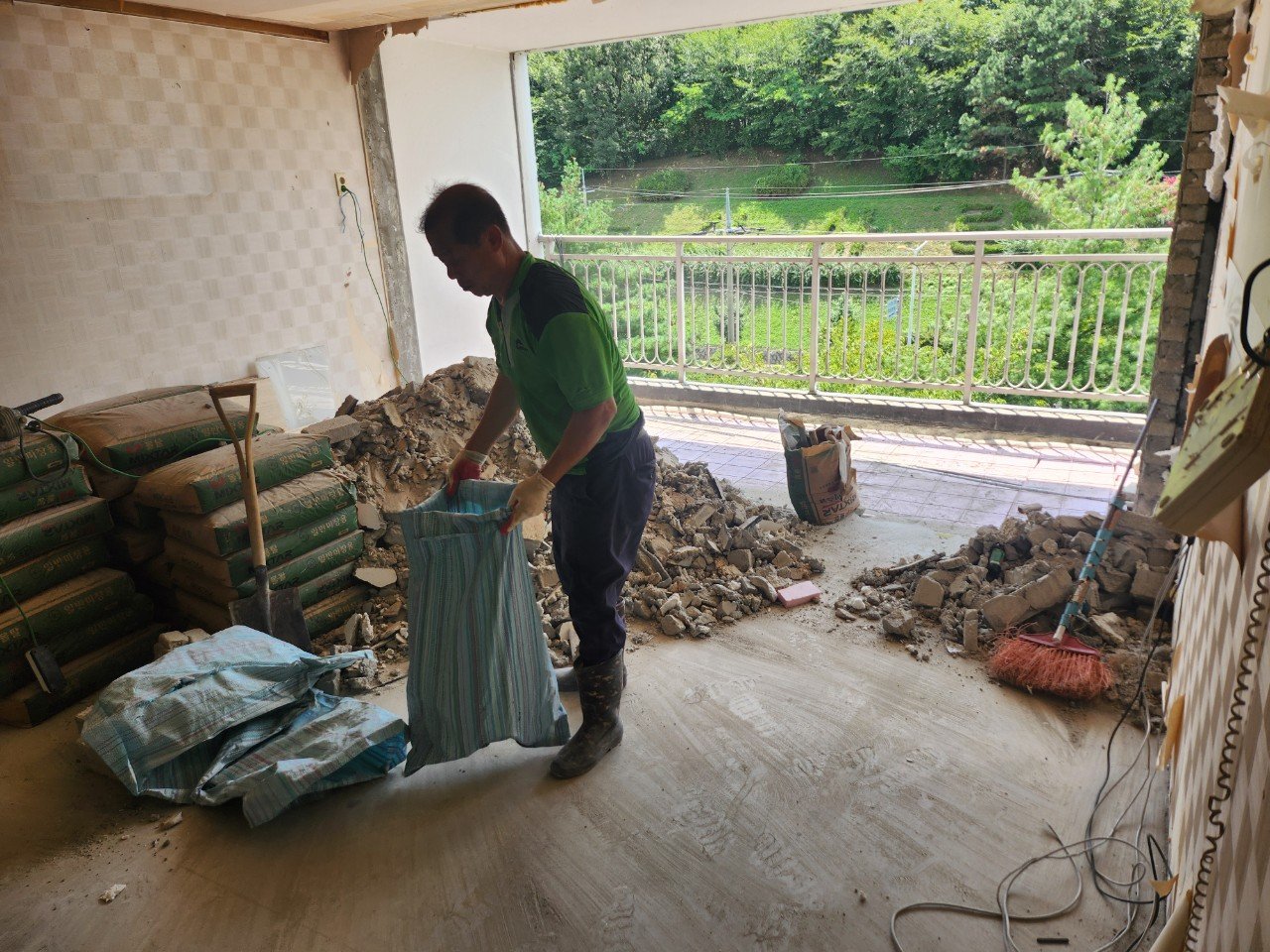 거실과 베란다를 가르던 벽을 정리하고 나니 시야가 트이면서 개방감이 확 살아납니다. 철거 과정에서 발생한 폐기물도 즉시 분리·정리해 다음 공정 준비까지 깔끔하게 마무리했습니다. 공정 사이의 청결 관리가 뒤 공정 품질에 영향을 주는 만큼, 언제나 현장 정리를 우선합니다.