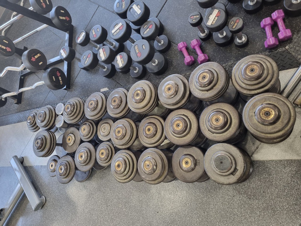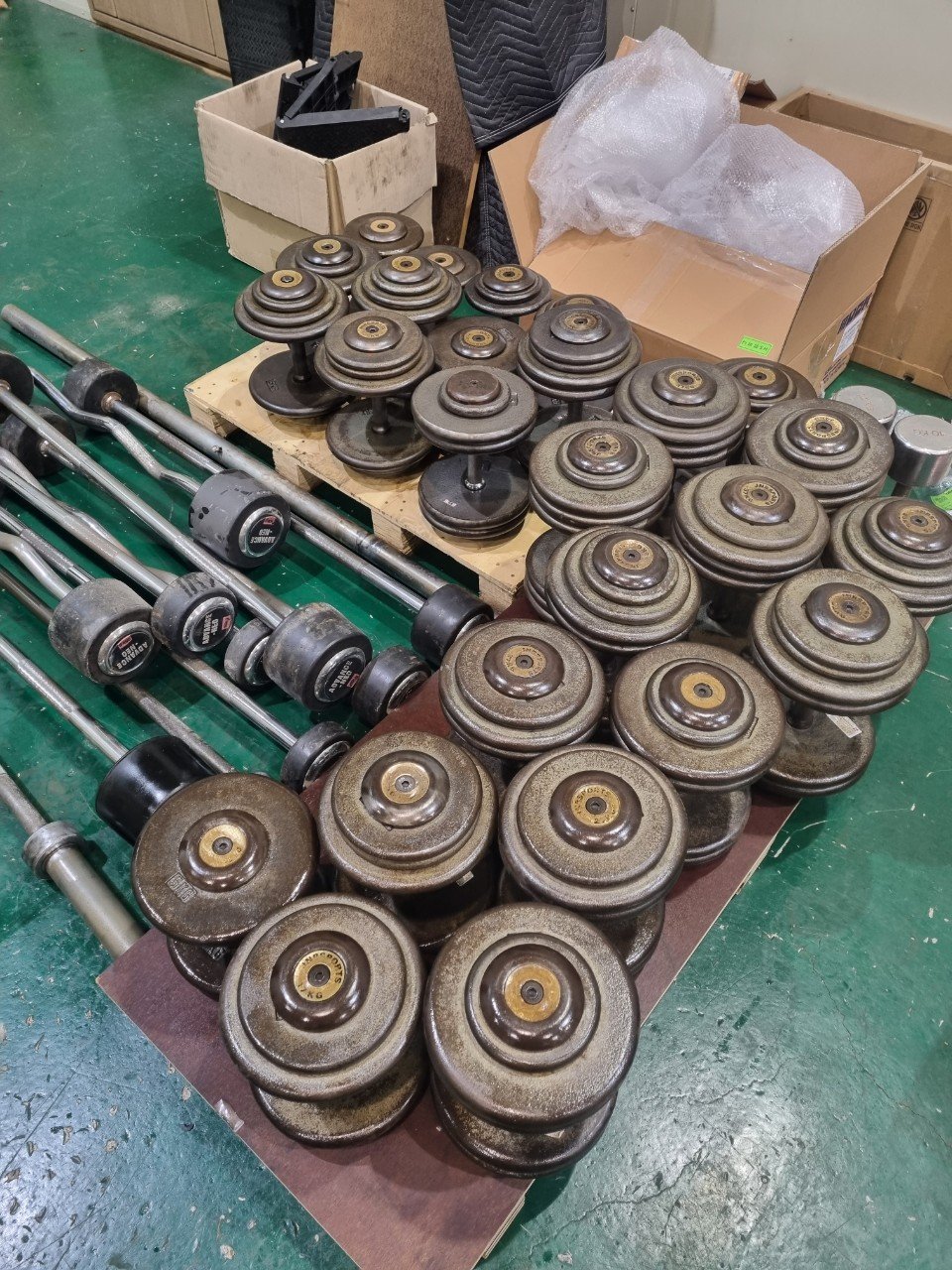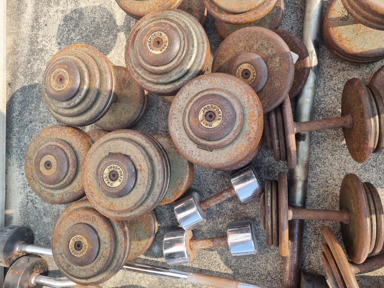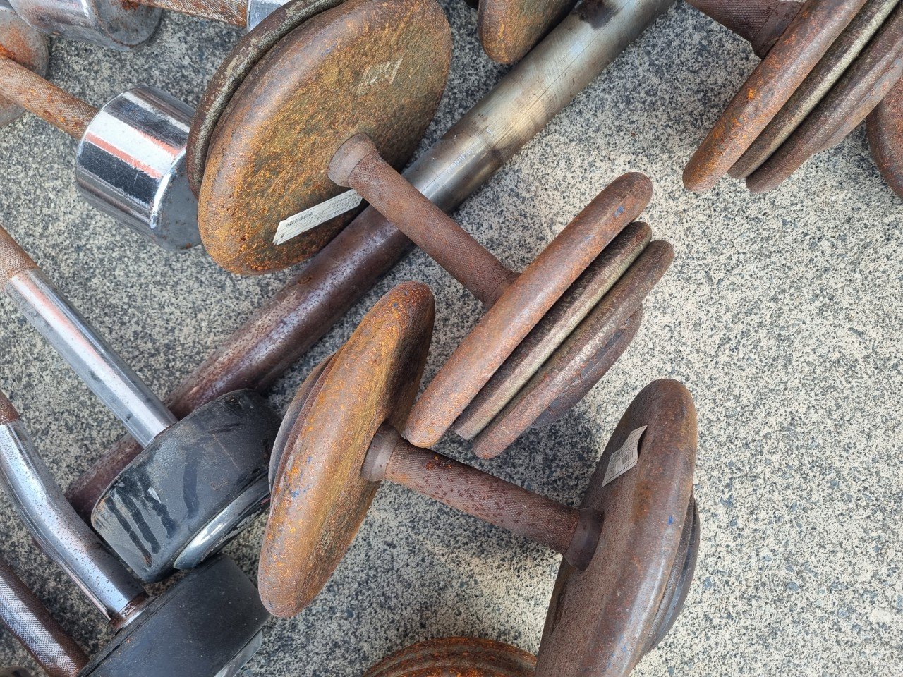 이번에 방문한 곳은 학생들과 학교 구성원들이 함께 사용하는 체육시설이었습니다. 덤벨과 바벨, 원판 등 여러 운동기구가 오랜 시간 땀과 습기에 노출되면서 표면에 붉은 녹이 넓게 올라온 상태였어요.