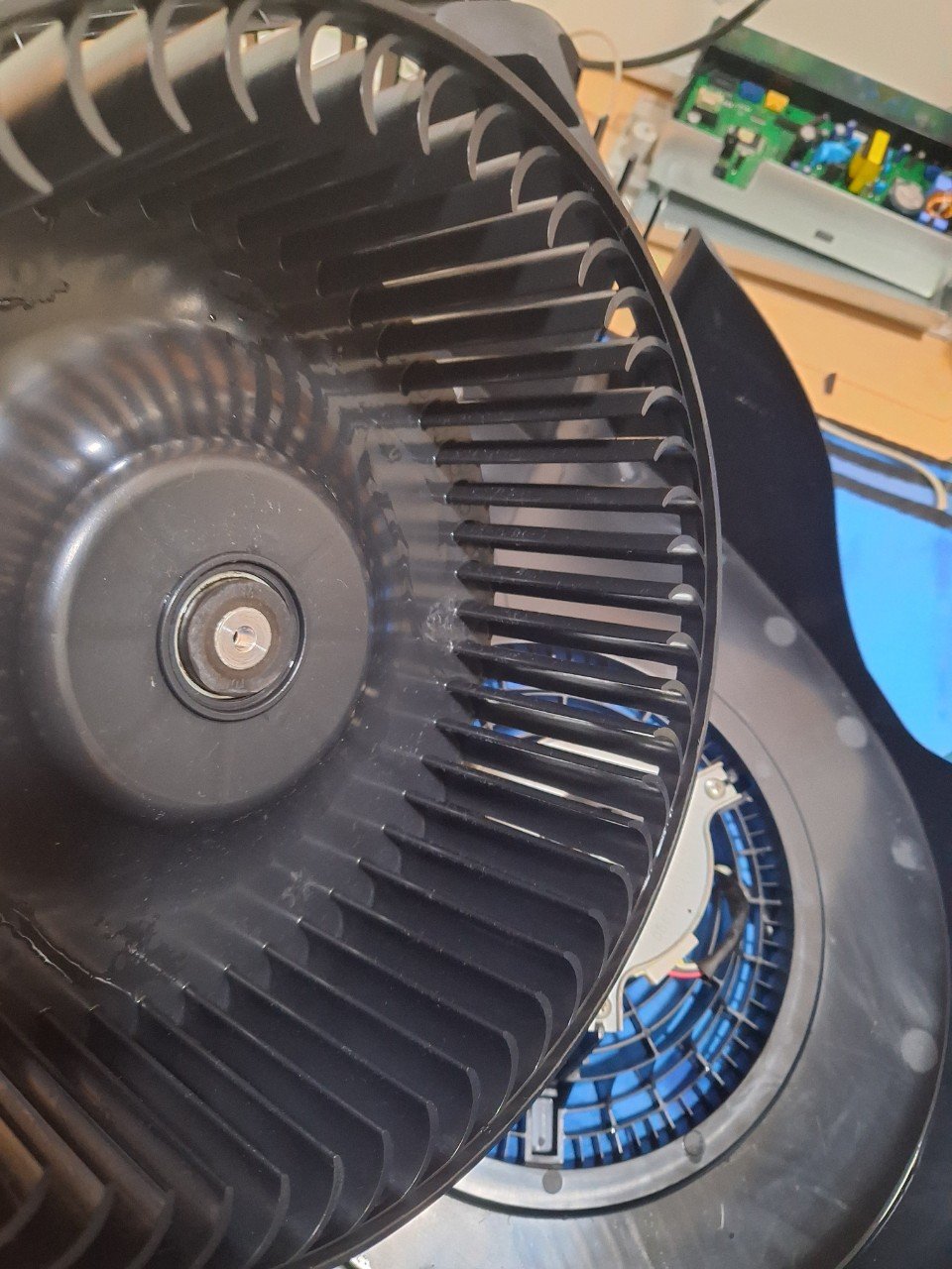 모든 부품을 원위치에 조립한 후에는 시운전을 통해 상태를 점검합니다. 공기청정기를 켜고 풍량, 소음, 진동을 차례대로 확인했습니다.