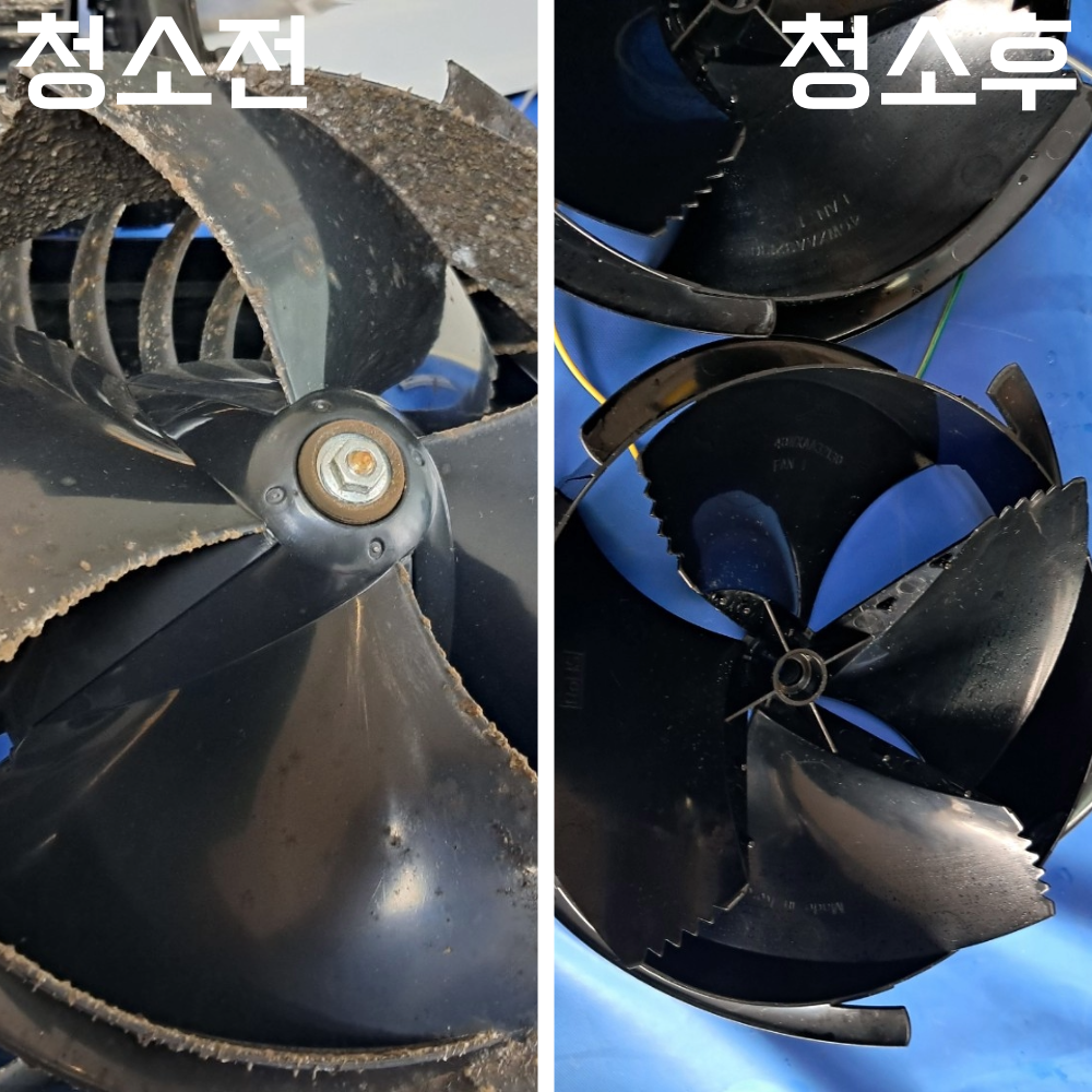 먼지와 오염이 잘 불어날 수 있도록 충분히 불림 작업을 진행한 후, 냉각핀 주변, 송풍팬, 내부 통로를 순서대로 세척합니다. 이 과정에서 고압세척과 솔질을 병행해 묵은 오염을 제거하고, 마지막에는 깨끗한 물로 여러 번 헹궈 세제 잔여물이 남지 않도록 마무리합니다.