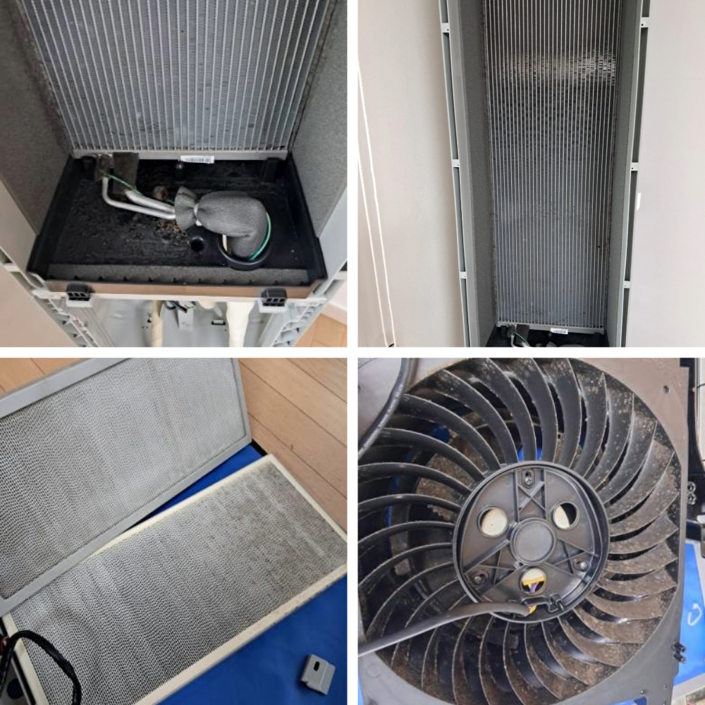 특히 오랜 기간 사용한 스탠드 에어컨의 경우에는 보이지 않는 내부에 먼지가 층층이 쌓이면서, 습기와 만나 냄새의 원인이 되는 부분이 생기기 쉽습니다. 그래서 실제 작업에서는 외부보다도 내부 구조를 얼마나 정확히 확인하고, 꼼꼼하게 세척하는지가 중요한 포인트입니다.