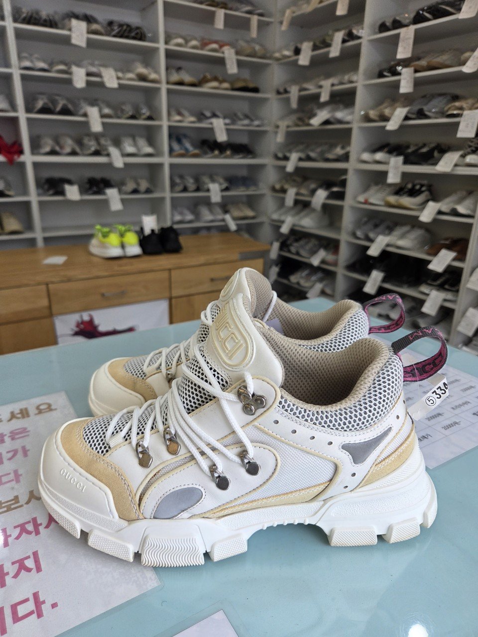 - 모델: 구찌 화이트 스니커즈(복합 소재)