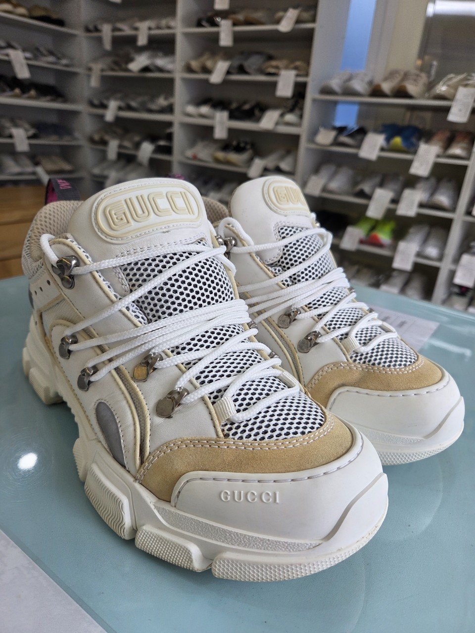 오늘은 구찌 흰색 운동화 세탁과 뒷꿈치 안감 보강 작업을 진행한 현장 후기를 소개드릴게요. 화이트 스니커즈는 예쁘지만 오염이 바로 티 나고, 소재가 섞여 있으면 세탁 난이도도 높죠. 이번 의뢰 신발도 전반적 컨디션은 괜찮았지만 생활 얼룩과 뒷꿈치 안감 손상이 눈에 띄었습니다.
