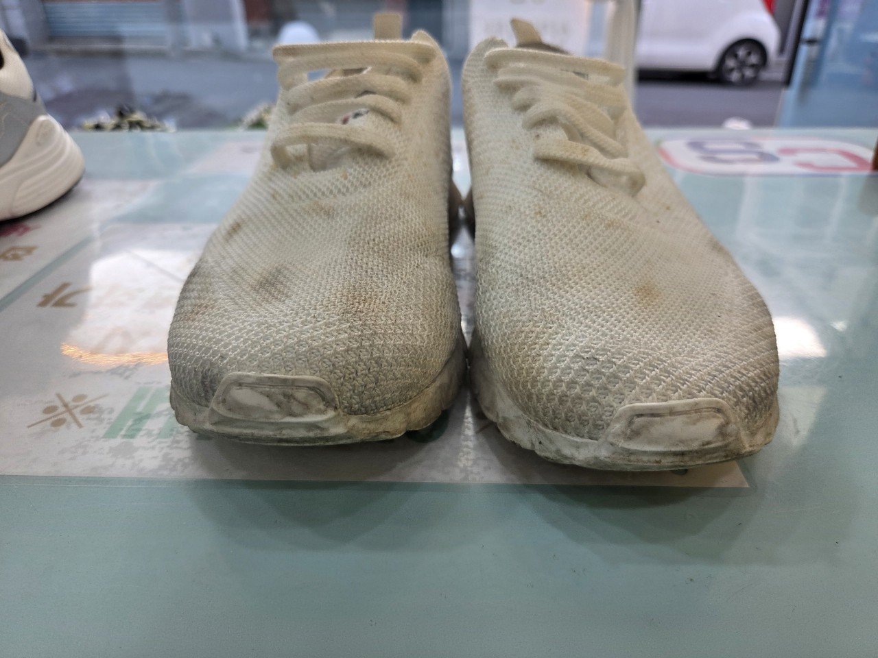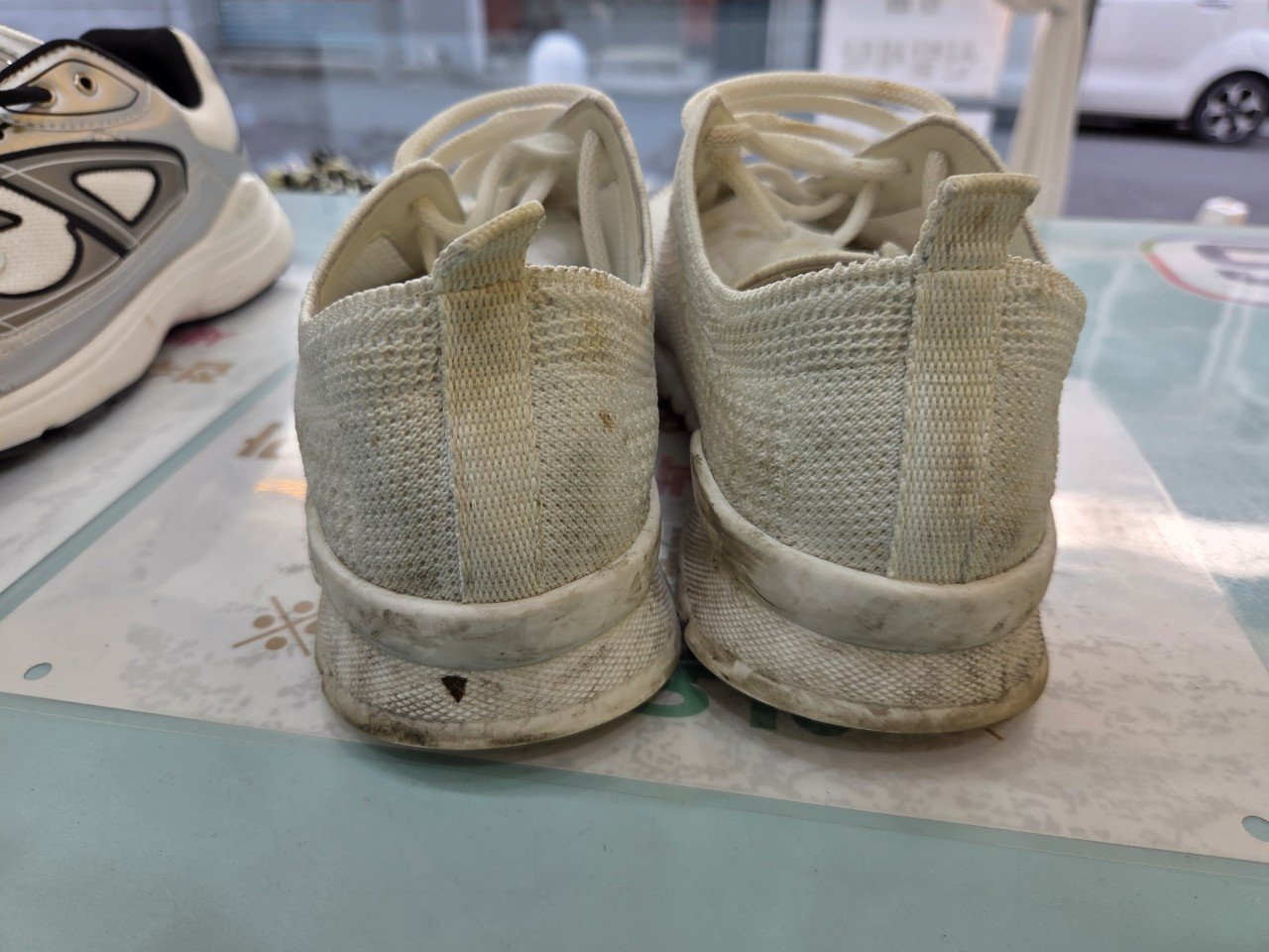 니트·메쉬 스니커즈는 홈세탁 시 변형과 번색의 위험이 큽니다. 물티슈나 강한 세정제 사용은 섬유 손상을 유발할 수 있으니, 오염이 보이면 문지르기보다 즉시 문의 주세요.
