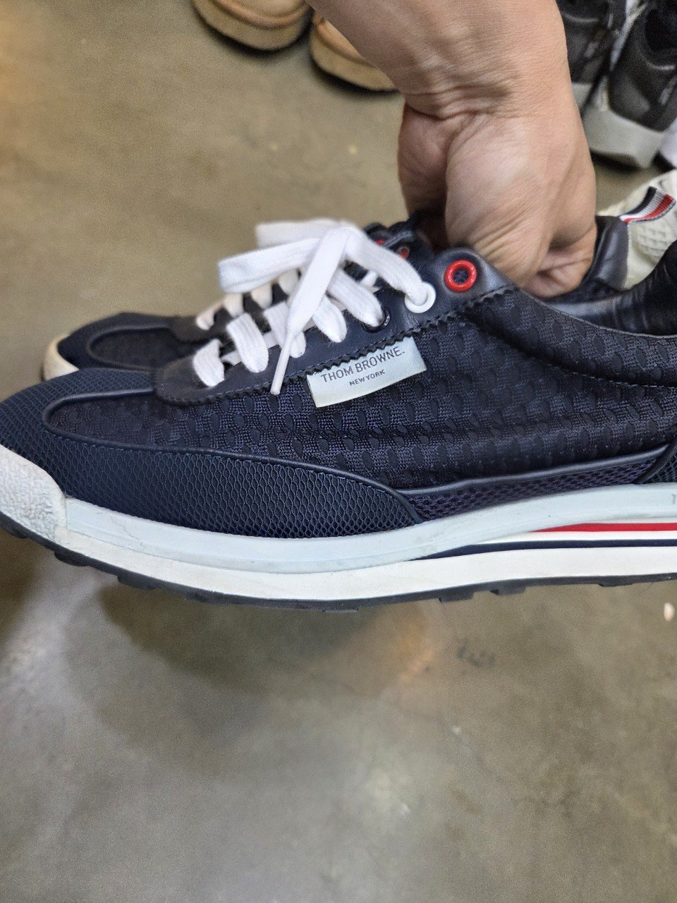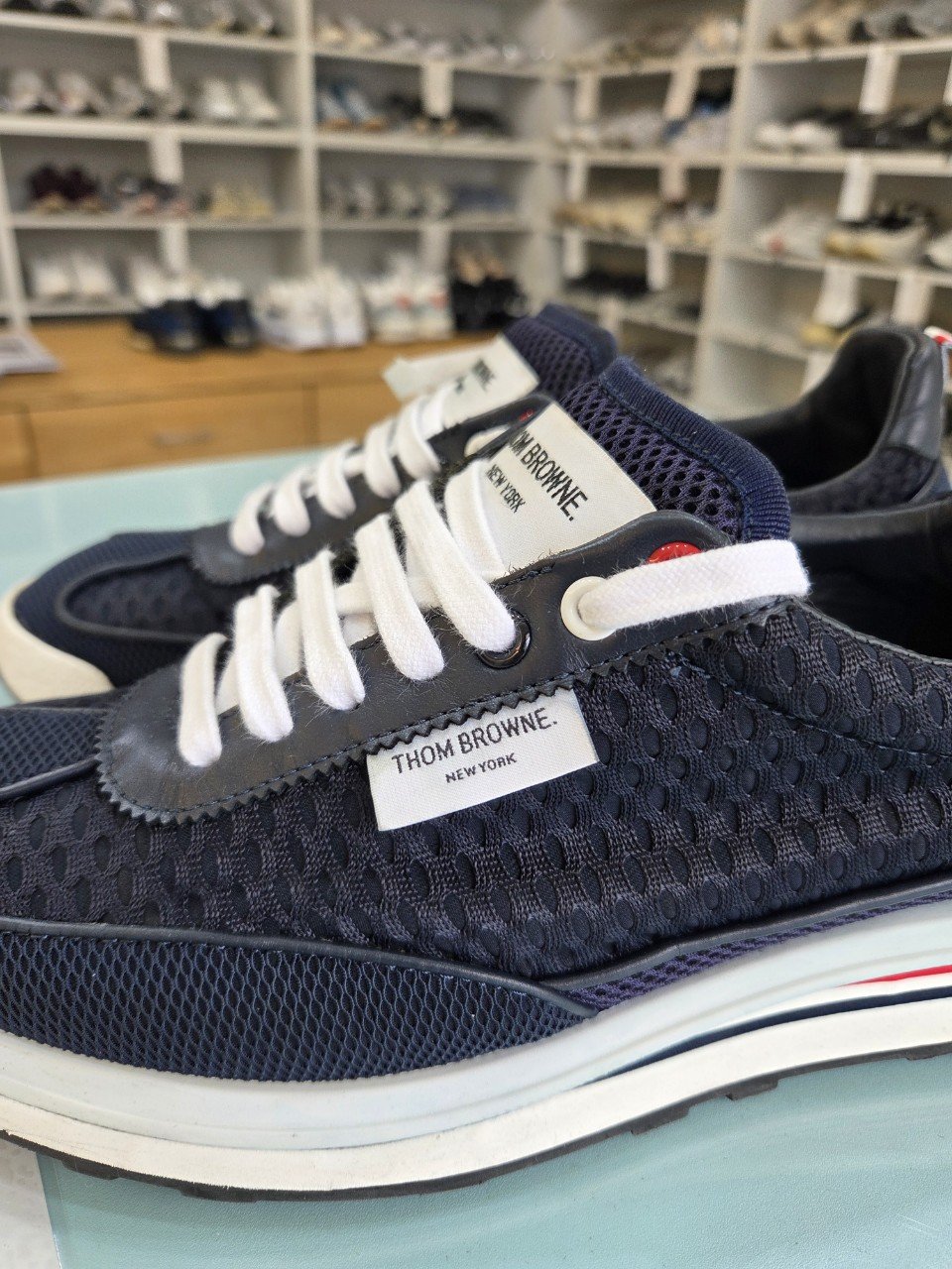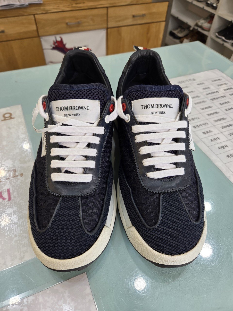 오늘은 울산에서 택배로 맡겨주신 톰브라운 스니커즈 이염 제거 세탁 후기를 전해드릴게요. 집에서 전체 물세탁을 하셨다가 로고 주변에 파란색 얼룩이 번지며 이염이 고착됐다는 문의였어요. 명품 스니커즈는 소재가 다양하게 섞여 있어, 무심코 물세탁을 하면 염료가 흘러나오거나 라벨·스트랩에서 색 번짐이 생기기 쉽답니다.