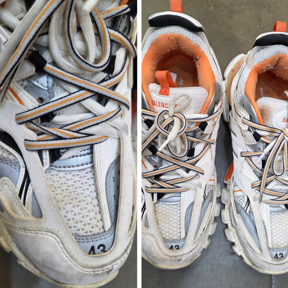 발렌시아가 트랙을 비롯해 복합 소재로 구성된 명품 스니커즈는 셀프로 관리하기가 쉽지 않습니다. 구조가 복잡해 눈에 안 보이는 부분까지 물과 세제가 스며들기 쉽고, 건조가 충분히 이뤄지지 않으면 접착 파손이나 변형으로 이어질 수 있습니다.