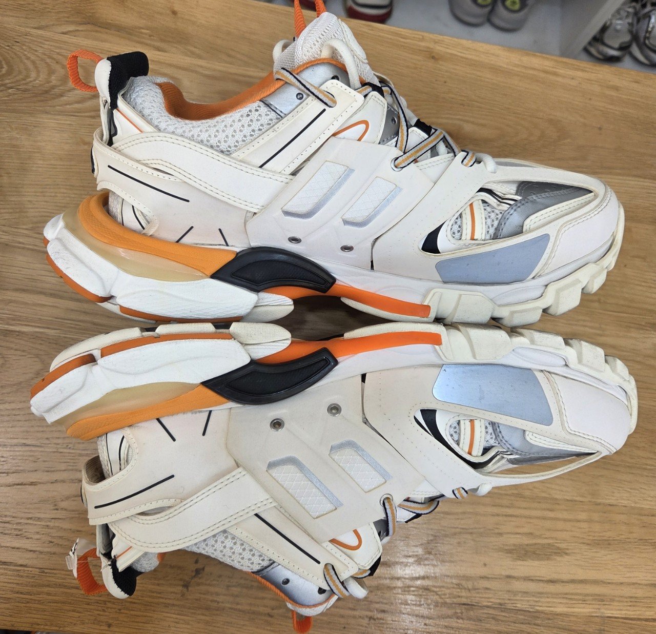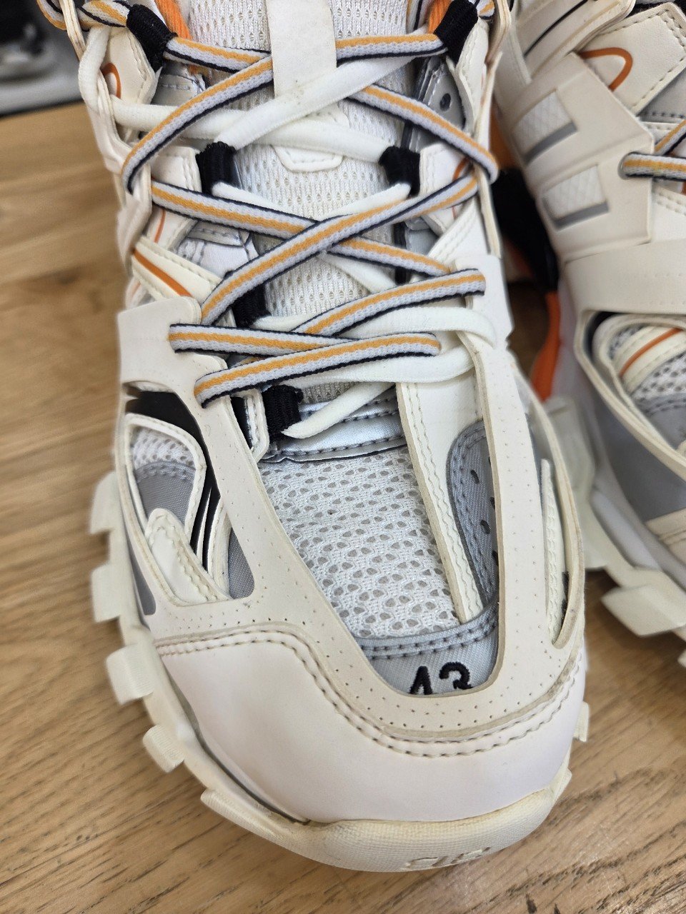 군데군데 얼룩처럼 보이던 부분이 정리되면서 발렌시아가 트랙 특유의 레이어드 디테일이 훨씬 또렷하게 살아났습니다. 화이트와 아이보리가 뒤섞여 탁해 보이던 톤도 본래 색감에 가깝게 정돈되면서 전체적인 실루엣이 한층 깔끔해졌습니다.