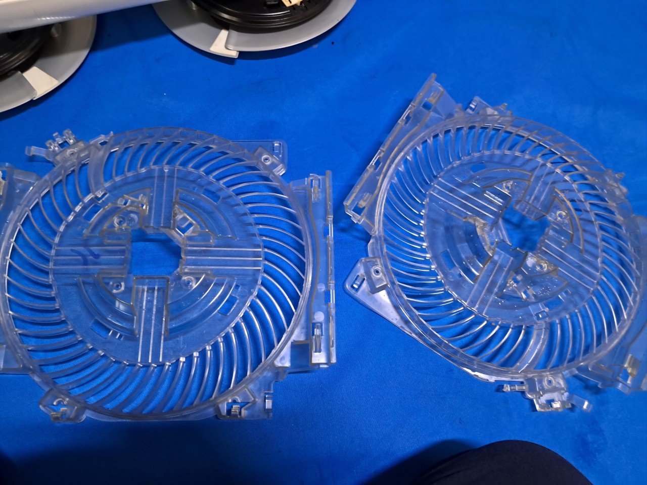 분해를 해보면 투명 팬커버나 내부 프레임 쪽에 검은 점 형태의 곰팡이 얼룩이 자리 잡고 있는 경우가 많습니다. 이런 곰팡이는 단순히 보기만 싫은 것이 아니라, 바람을 탈 때마다 특유의 꿉꿉한 냄새를 만들어내는 원인이 됩니다.