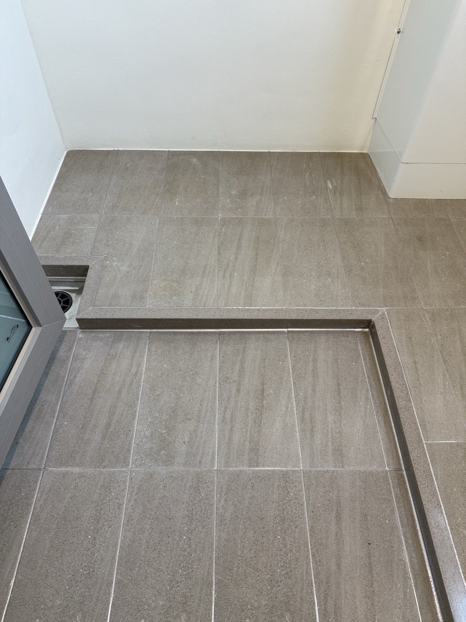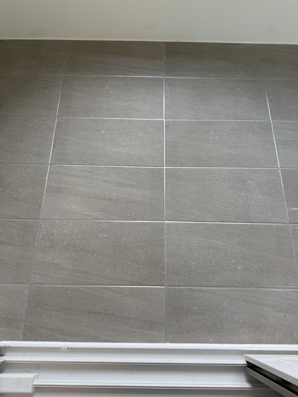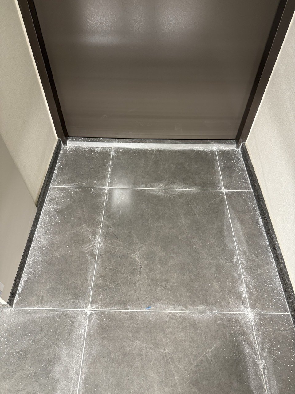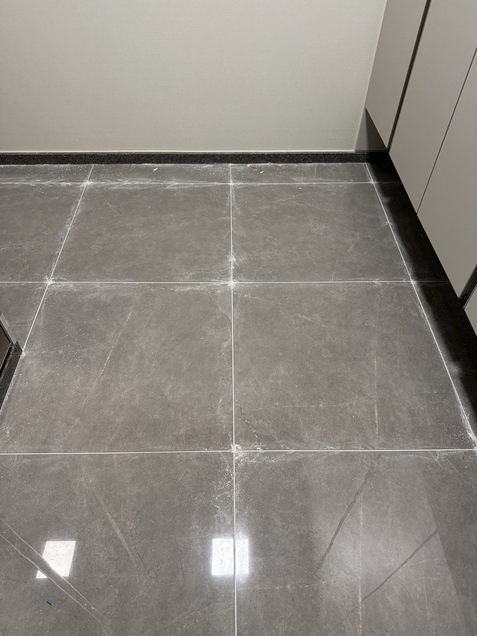 특히 이번처럼 현관에서 욕실, 세탁실, 베란다까지 이어지는 구조에서는 시선이 자연스럽게 연결되기 때문에, 줄눈 컬러를 통일했을 때 집 전체의 인상이 훨씬 깔끔하고 안정감 있게 정리되는 장점이 있습니다.