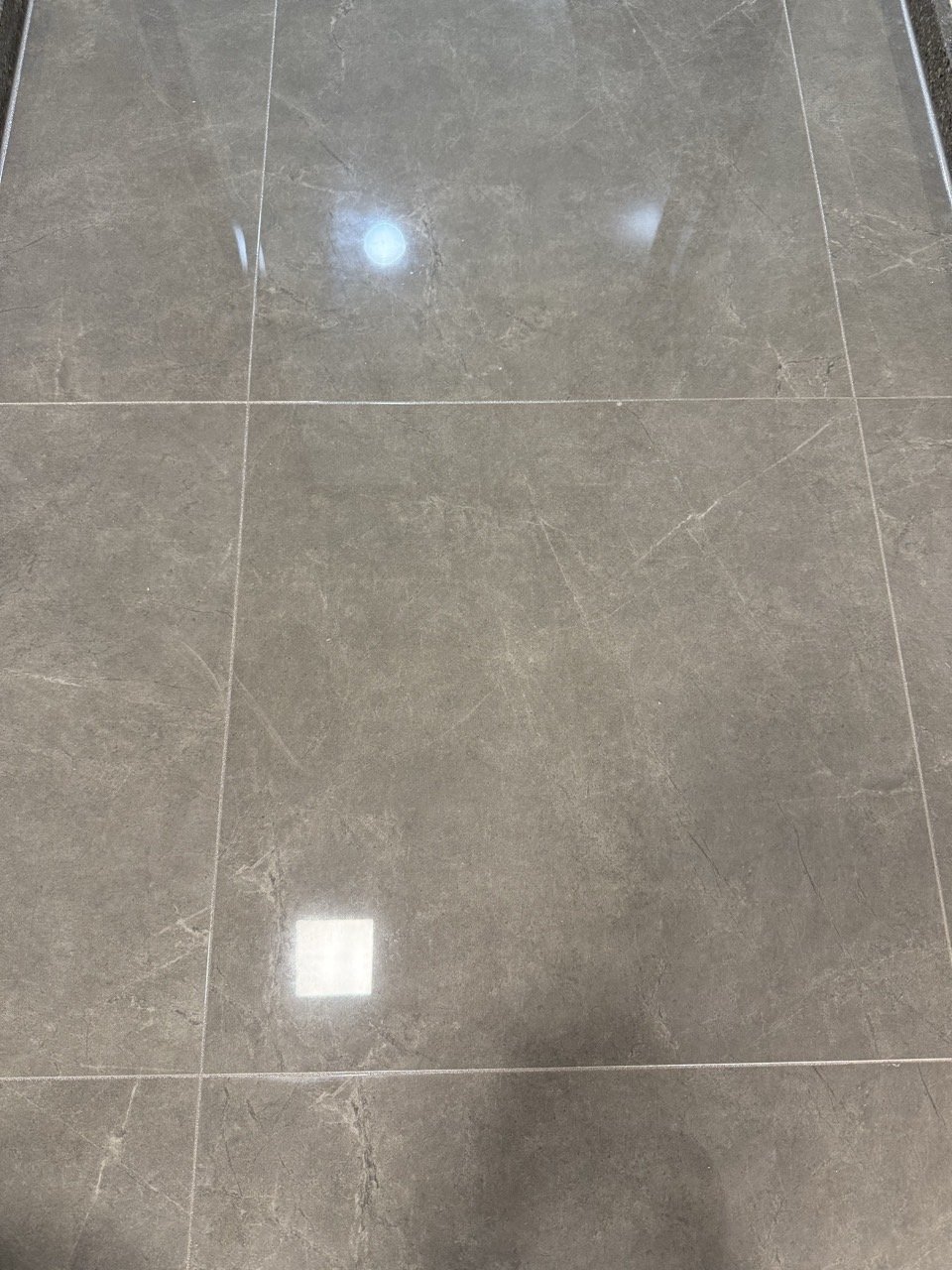 번트브라운은 과하게 튀지 않으면서도 타일과 자연스럽게 어우러지는 컬러라, 매일 봐도 부담스럽지 않고 오래 봐도 질리지 않는 톤입니다. 가까이에서 보았을 때도 줄눈선이 고르게 살아 있어 신축 입주 전 마무리 작업으로 만족도가 높은 편입니다.