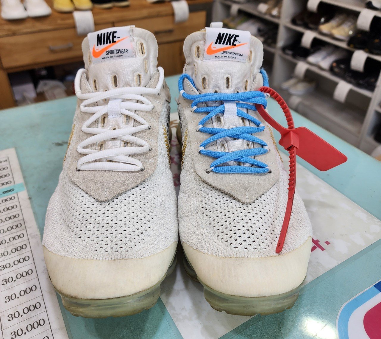 베이퍼맥스 화이트는 통기성이 좋은 메쉬가 주 소재라 강한 마찰이나 과도한 수분 접촉에 취약합니다. 세탁 전, 전체 톤의 변색과 앞코·끈 주변의 접촉 오염, 미드솔의 먼지 착색 정도를 확인하고 부위별로 다른 방식으로 접근했습니다. 소재를 지키는 것이 가장 중요했어요.