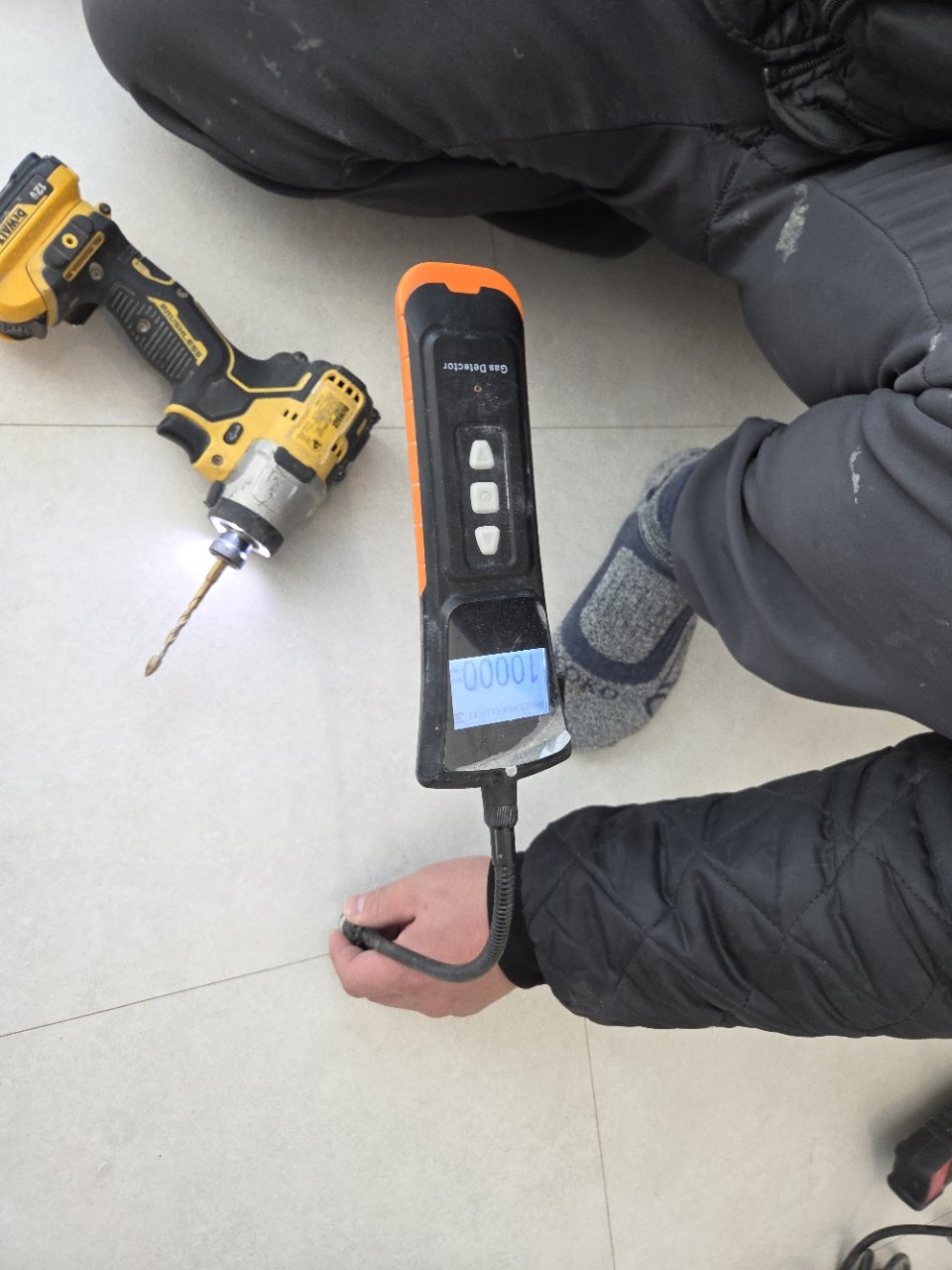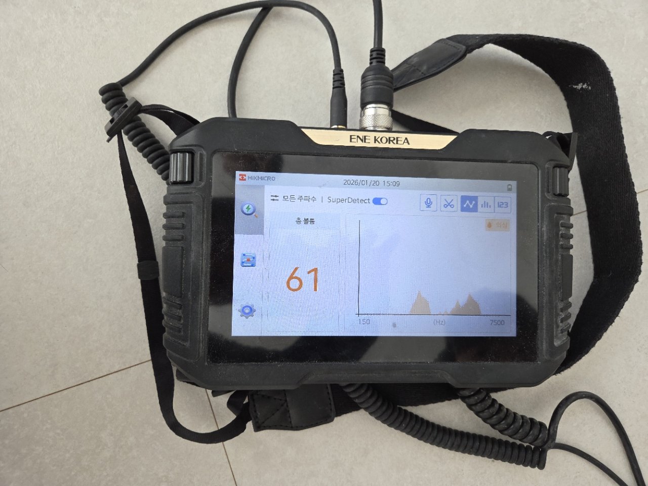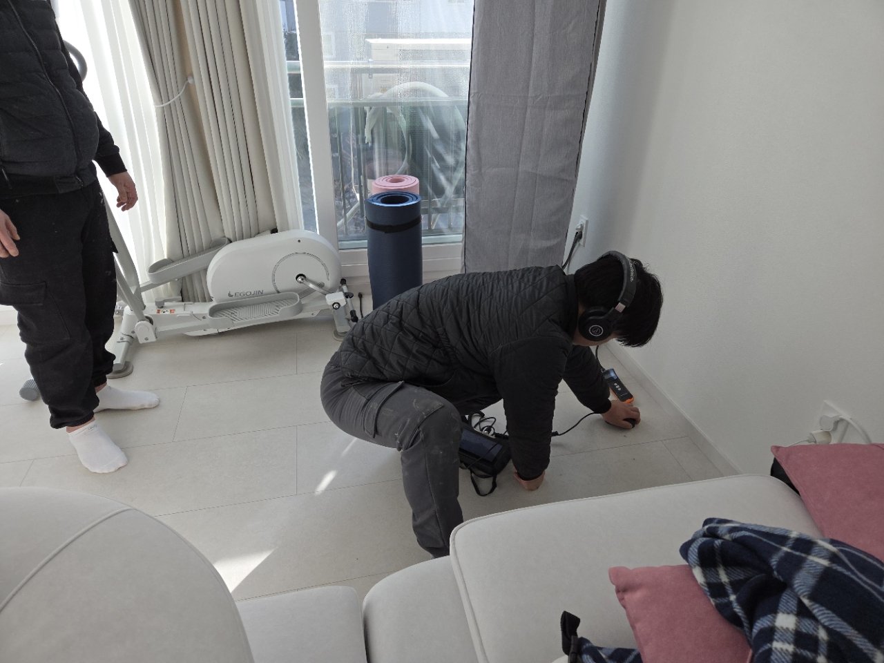 누수 위치를 좁혀가기 위해 가스탐지와 청음탐지를 병행했습니다. 미세 누수는 넓은 면적을 무작정 철거하면 오히려 손상이 커질 수 있기 때문에, 먼저 신호가 모이는 구간을 정밀하게 확인하는 방식으로 접근해야 합니다.