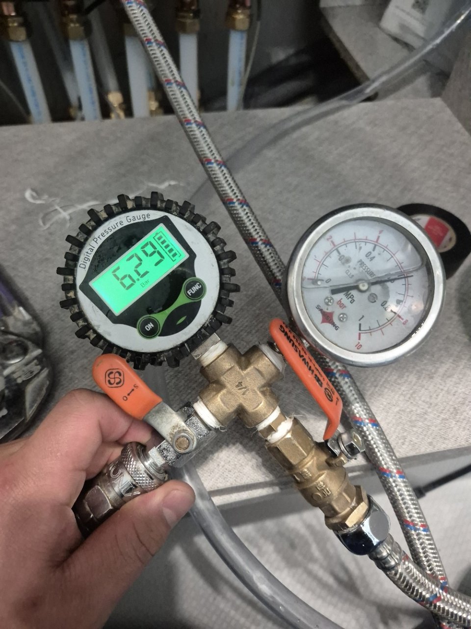 이후 난방배관 압력검사를 진행했는데, 압력이 급격히 떨어지는 정도는 아니었지만 미세한 손실이 확인됐습니다. 이런 유형은 누수량이 많지 않아 초기에 지나치기 쉽고, 위치를 찾는 과정도 더 까다로운 편입니다. 그래서 장비만으로 판단하기보다 여러 탐지 방법을 함께 적용하는 것이 중요합니다.