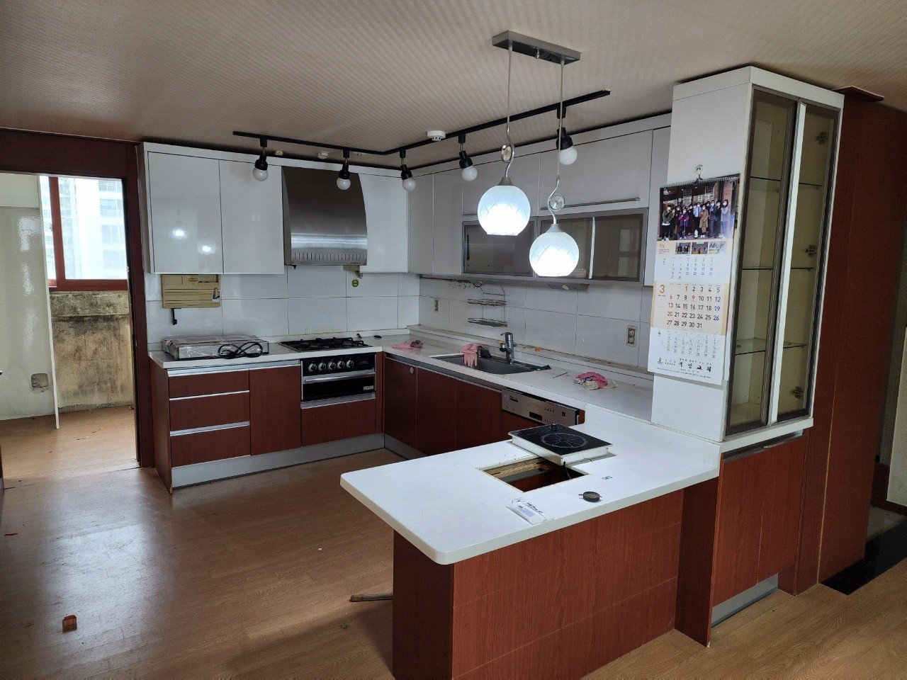 기존에는 체리색 가구와 어두운 주방 컬러가 공간을 눌렀고, 동선도 불편했어요. 이를 전면 철거로 초기화한 뒤, 샷시까지 교체해 쾌적한 기본기를 먼저 다졌습니다.