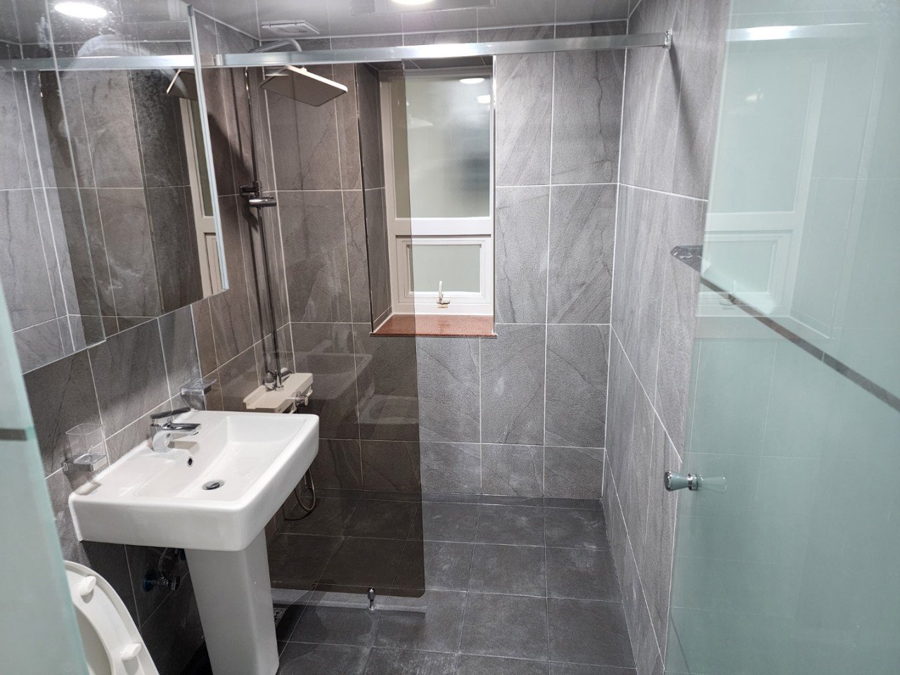 현관에는 3연동 유리 중문을 설치해 외부 공기·소음을 한 번 걸러주면서도 개방감은 유지했습니다. 욕실은 욕조를 과감히 철거하고 실용적 샤워부스로 교체, 바닥 경사와 파티션으로 물 튐을 최소화했어요. 방수·실리콘 마감과 소품 라인업을 통일해 청소가 쉬운 구조로 정리했습니다.