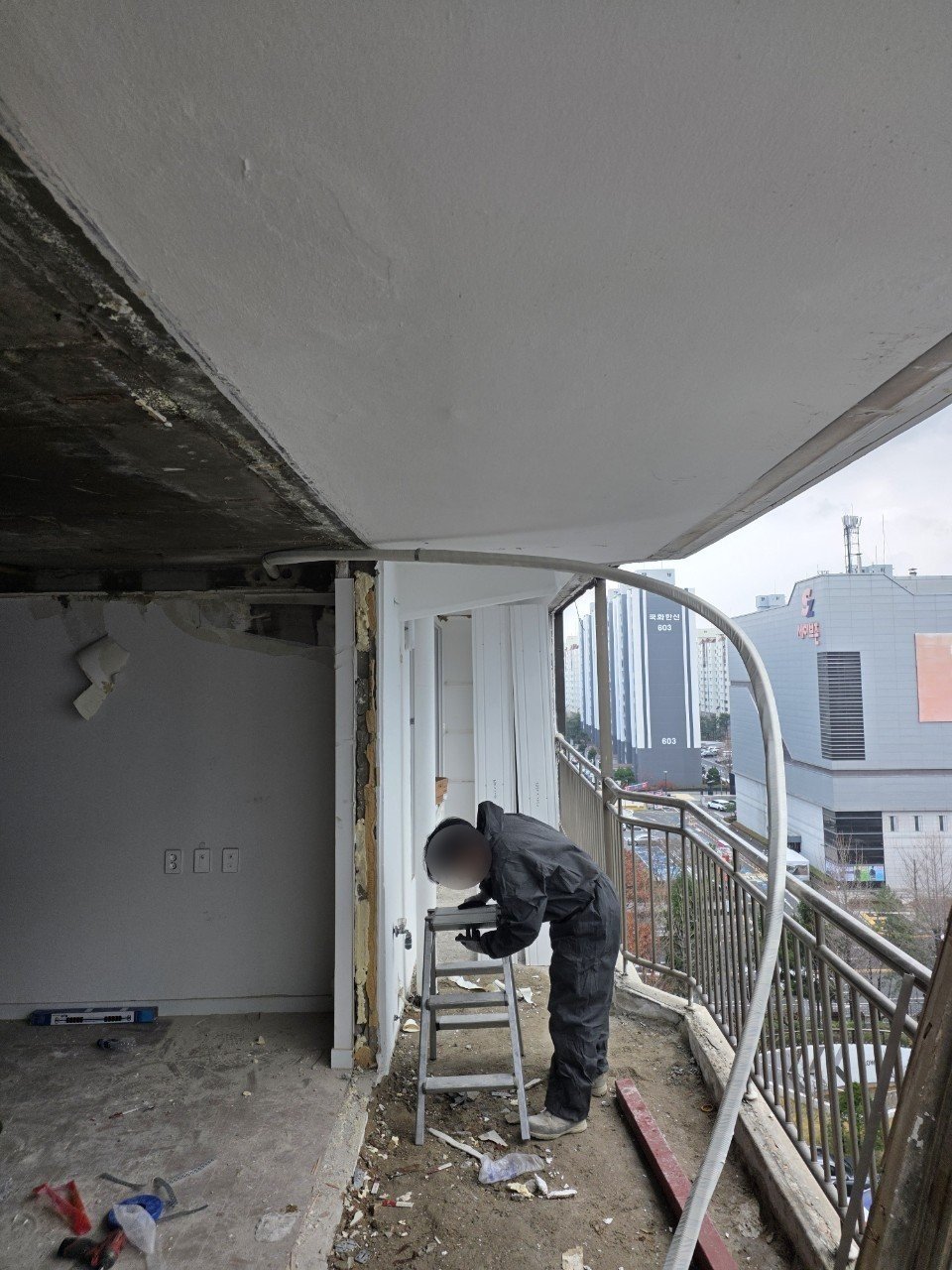첫 방문 당시에는 기존 천장이 전부 철거된 상태여서 콘크리트 골조가 그대로 드러나 있었고, 전기·목공·타일팀이 동시에 작업을 진행하고 있었습니다. 여러 팀이 한 공간에서 같이 움직이다 보니, 서로 동선이 겹치지 않도록 일정 조율이 무엇보다 중요했습니다.