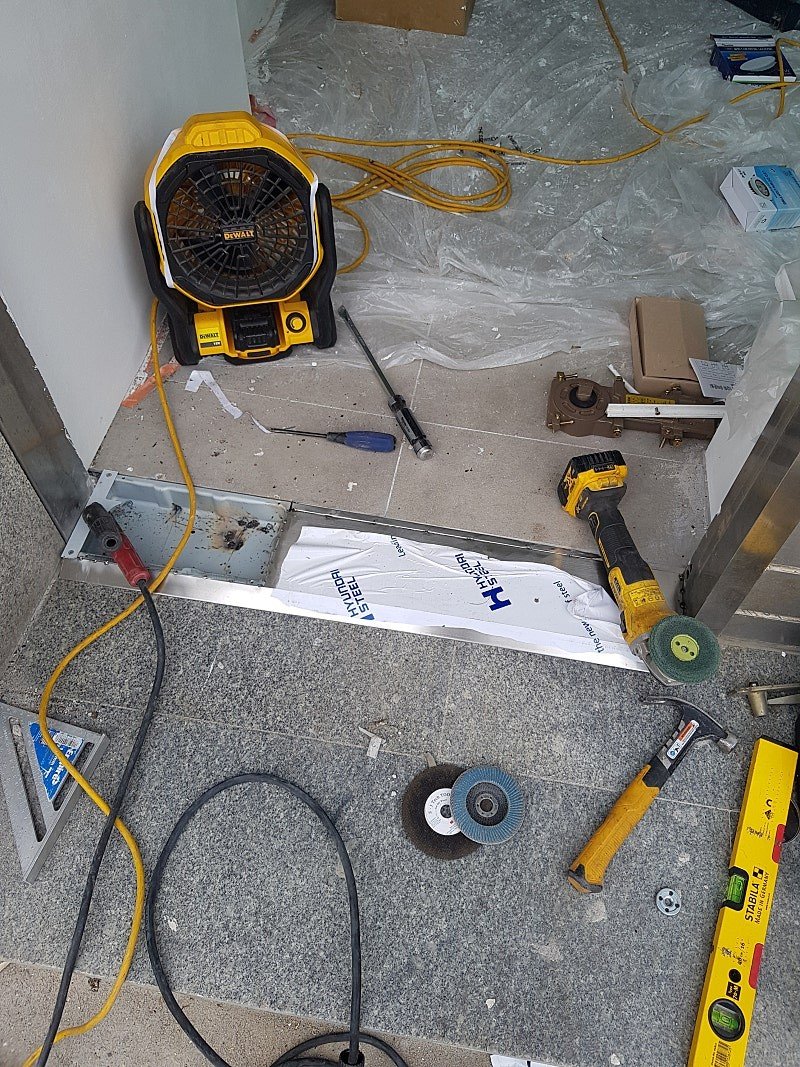 현장 리포트: 강화유리 철거 → 가마찌도어 설치