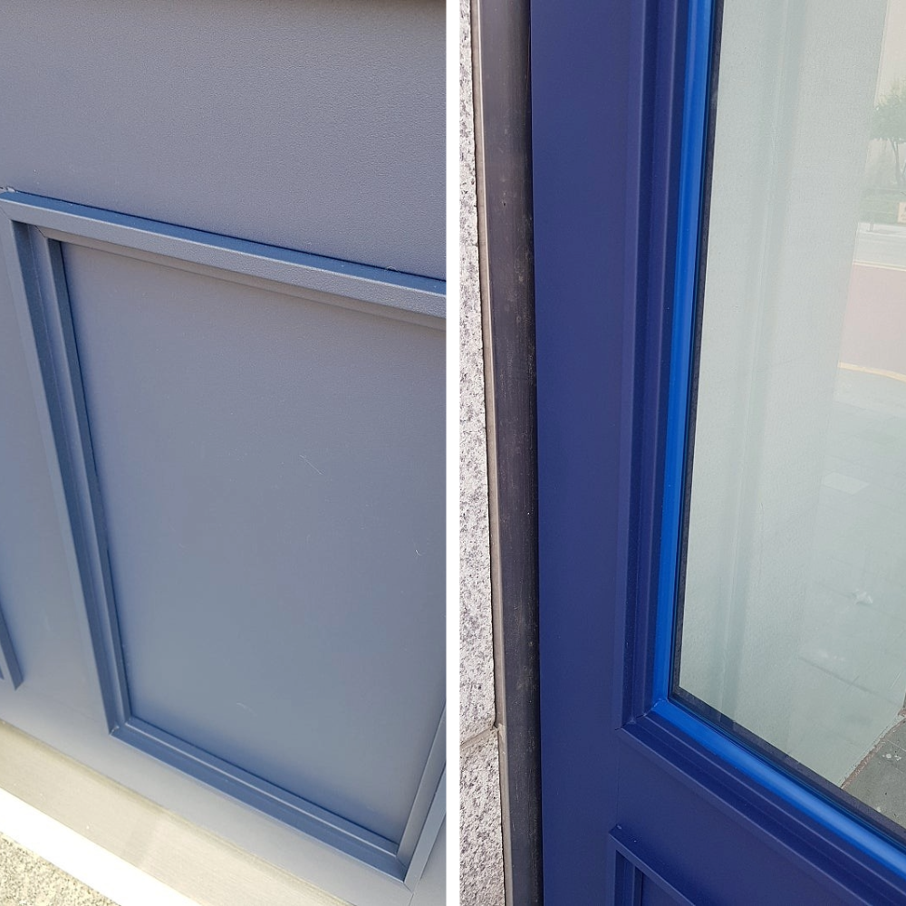 현장에서는 정확한 실측만 진행하고, 제작은 인천 공장에서 1:1 맞춤으로 제작했습니다. 매장 분위기에 맞춰 색상과 몰딩 디테일을 먼저 확정했고, 완성 도어는 분체도장으로 마감해 컬러감과 내구성을 모두 챙겼어요.
