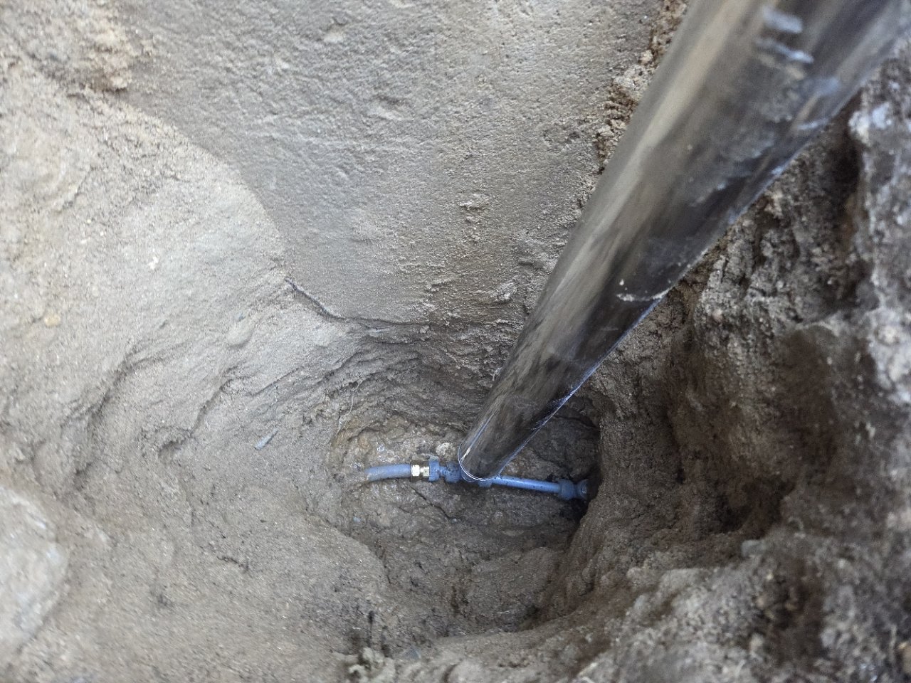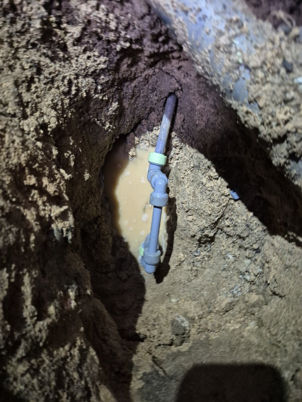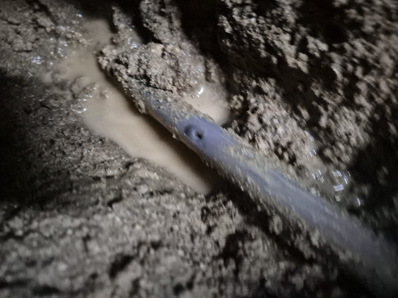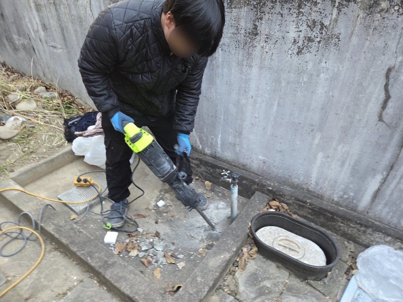 겉으로 보기에는 바닥이 약간 젖어 있는 정도였지만, 실제로는 땅속에서 물이 계속 흘러나오며 주변 흙을 적시고 있었고, 이 누수가 수도세 폭증의 주요 원인이 되고 있었습니다.