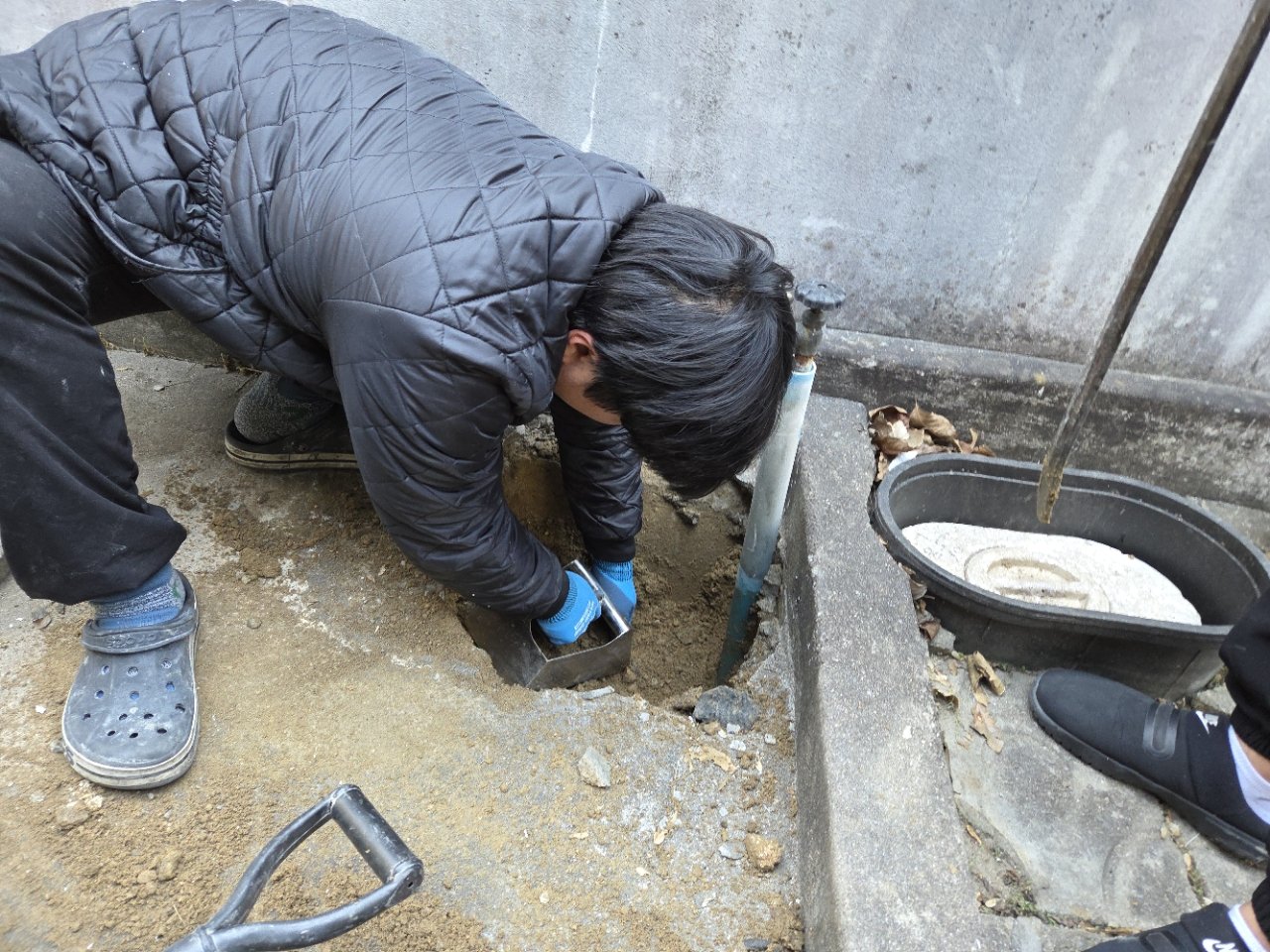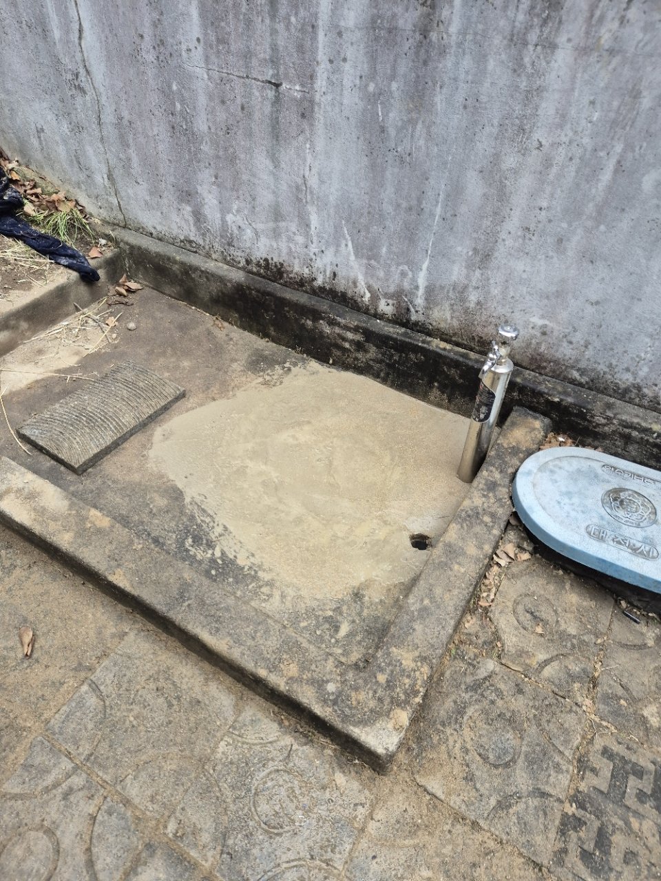 건물 뒤편 야외 화장실 쪽, 깊은 땅속에서 발견된 두 번째 누수