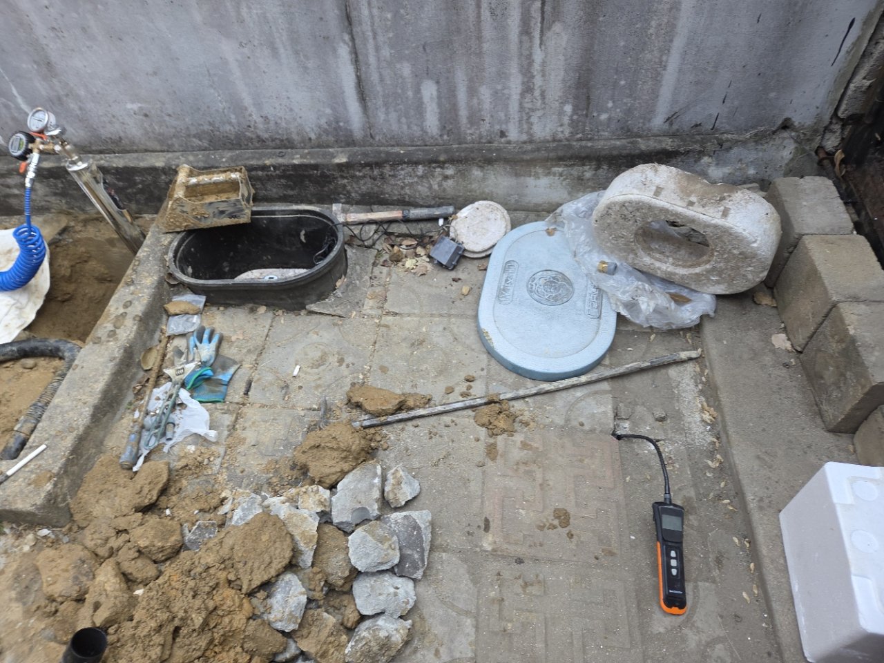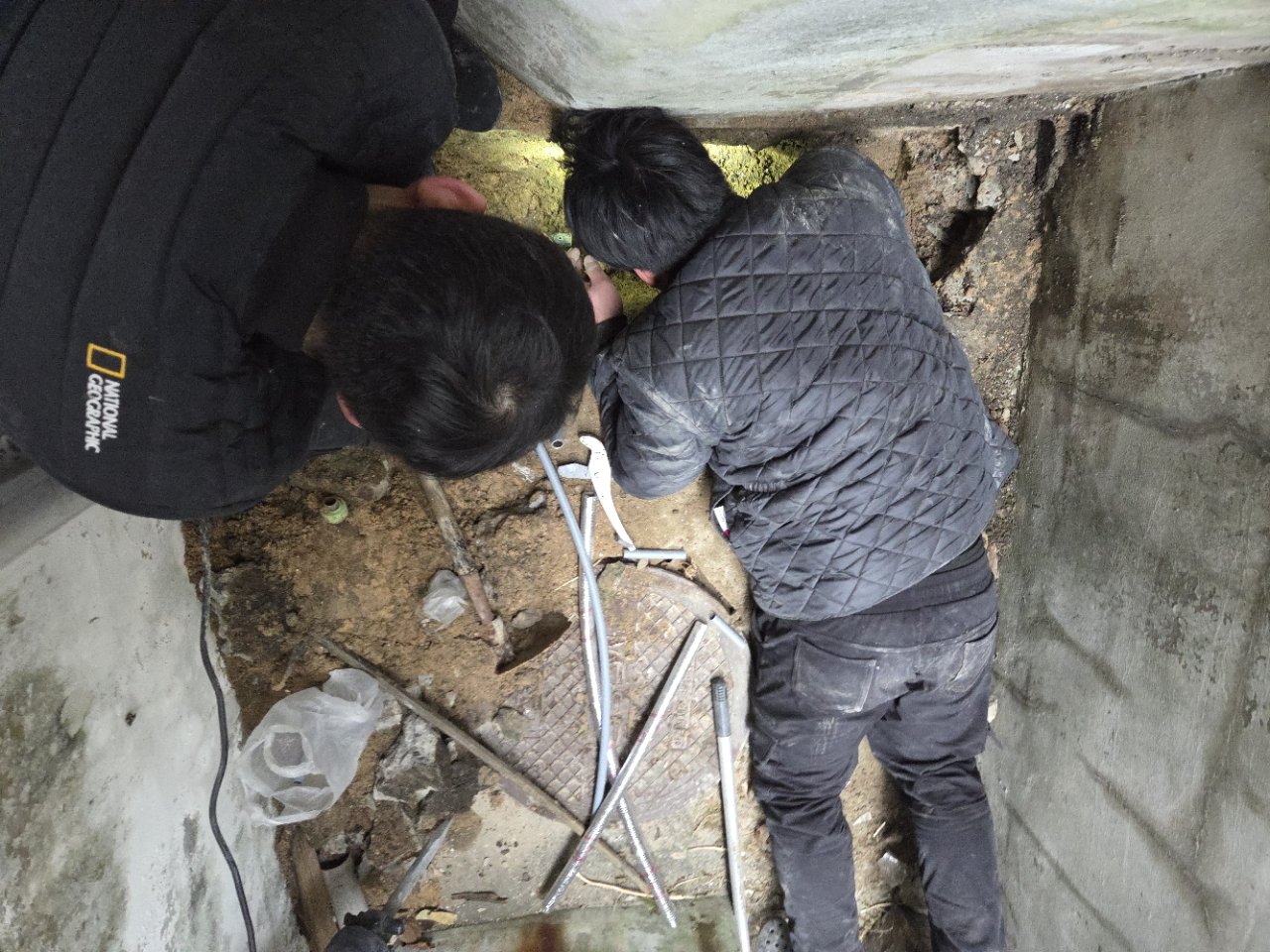 이 지점을 기준으로 필요한 만큼만 바닥을 굴착해 배관을 노출시킨 뒤, 손상된 구간을 정확히 절단·교체하여 수리를 진행했습니다.