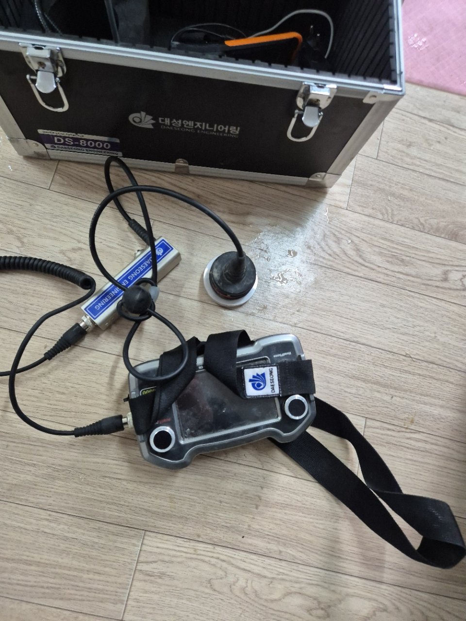 온수배관 누수임을 확인한 뒤, 공기압을 주입하고 청음장비를 활용해 누수음을 탐지하기 시작했습니다. 그런데 이번 현장은 누수량이 워낙 많다 보니 바닥 전체로 소리가 퍼져, 특정 지점을 콕 집어내기가 일반적인 현장보다 훨씬 까다로운 상황이었습니다.