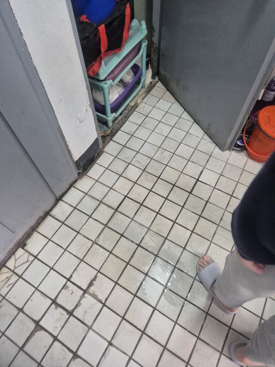 잠을 못 자는 건 둘째 치고, 바닥이 계속 젖어 있으니 화장실을 가거나 부엌을 오가는 것조차 조심스러워 생활 자체가 마비된 상태였습니다. 특히 1층 빌라의 바닥에서 물이 올라오는 양상은 윗집 누수와 달리 눈에 보이는 원인이 잘 드러나지 않아,