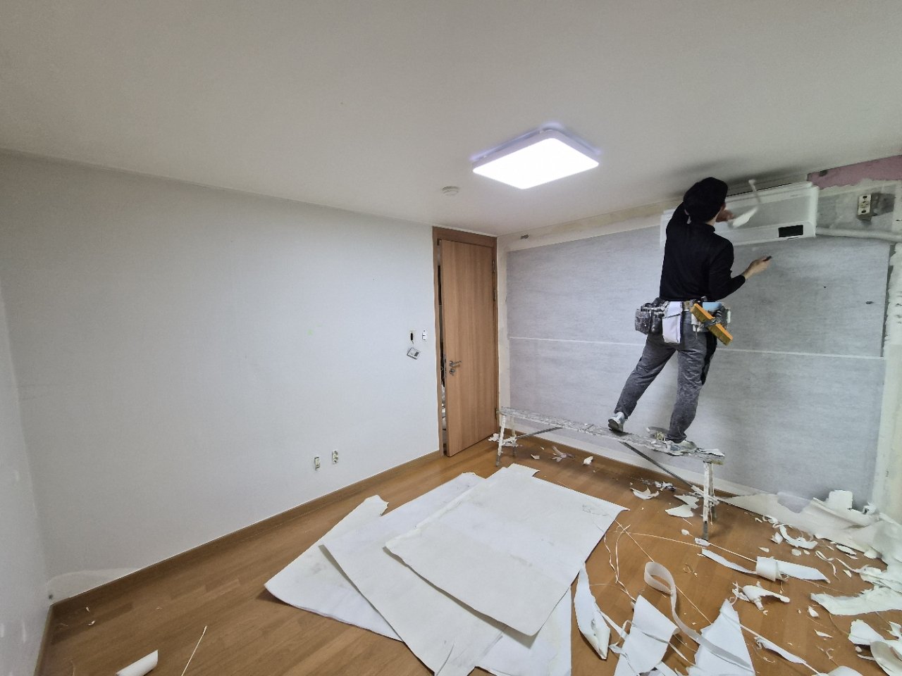 이번 현장은 천장 초배, 단열재 주변 퍼티 보수, 포인트 벽 마감까지 단계별로 차근차근 정리해 진행했습니다. 시공이 끝난 후에는 같은 구조의 집인데도 훨씬 넓고 밝아 보인다는 이야기를 들을 만큼 전체적인 인상이 많이 달라졌습니다.