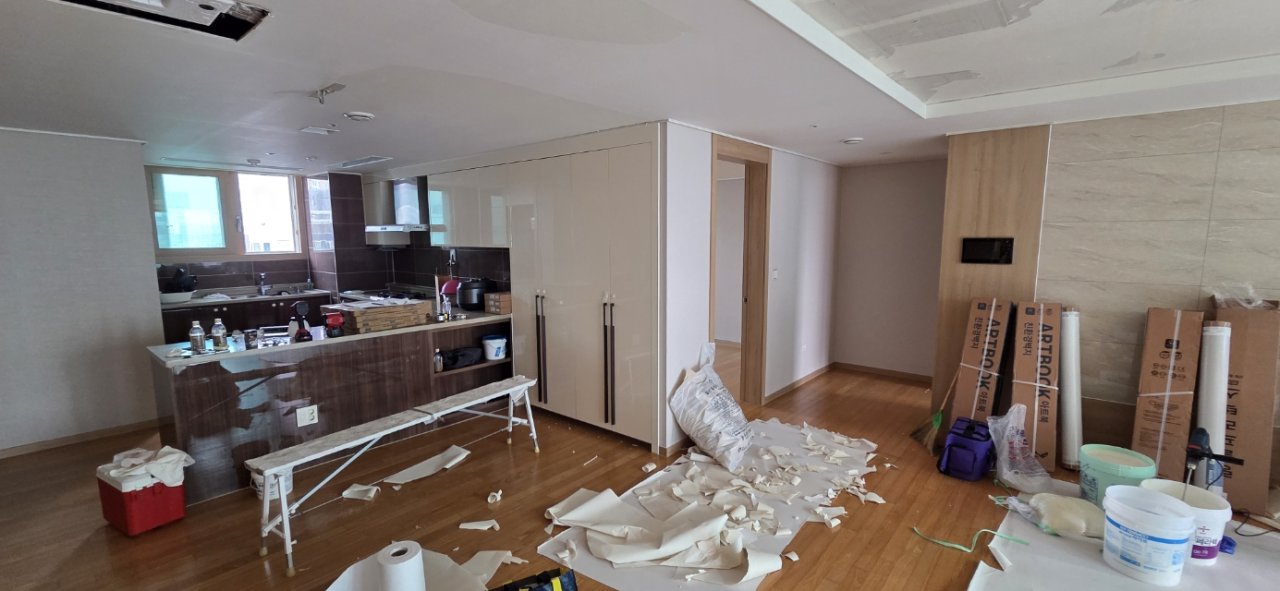 특히 실크벽지는 마감 후 조명이나 자연광이 비칠 때 면 상태가 그대로 드러나기 때문에, 벽지 자체의 퀄리티만큼이나 바탕 작업이 중요합니다. 이번 현장도 이 부분을 가장 큰 포인트로 두고 진행했습니다.