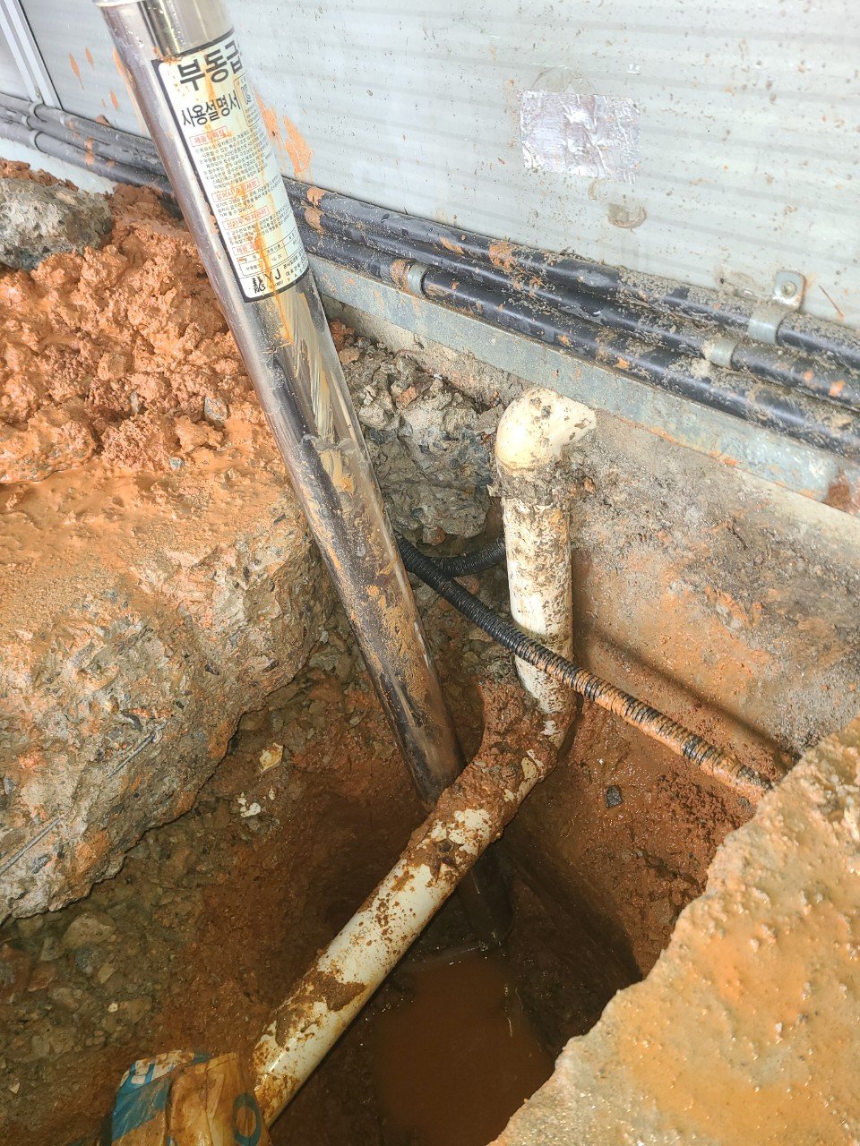 부동전 교체 작업은 주변 마감 손상을 최소화하는 것이 중요합니다. 이번 동탄 현장에서도 마당 콘크리트와 마감재를 최대한 보존하면서, 필요한 범위만 정리해 배관이 나오는 위치를 조심스럽게 노출시켰습니다.