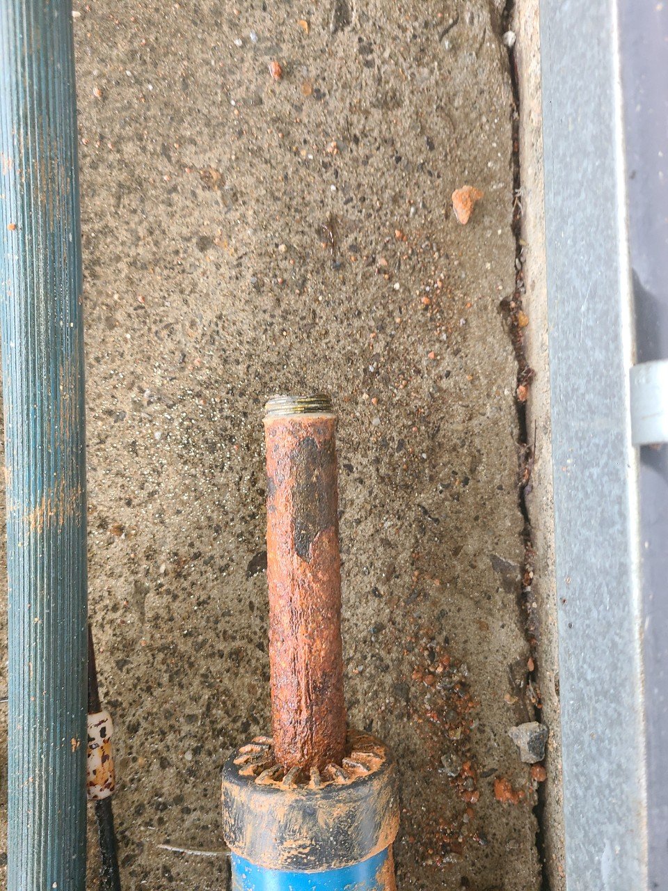 굴착을 통해 흙 속에 묻혀 있던 배관을 드러낸 뒤, 기존 부동전과 연결된 체결부를 하나씩 풀어 탈거했습니다. 분리 후 내부를 확인해 보니, 나사산 일부가 닳아 있고 부속 주변에도 누수가 반복된 흔적이 보였습니다.