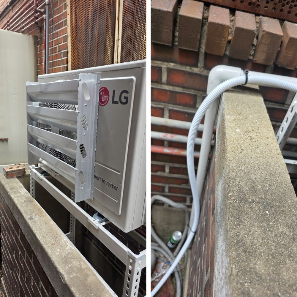 그래서 이번에는 2단 앵글을 설치해 실외기를 위로 올리고, 보다 안정적으로 공기가 순환될 수 있도록 자리를 잡아드렸습니다. 이런 부분은 겉으로는 크게 티가 나지 않을 수 있지만, 실제 사용 기간이 길어질수록 차이가 분명하게 나타납니다.