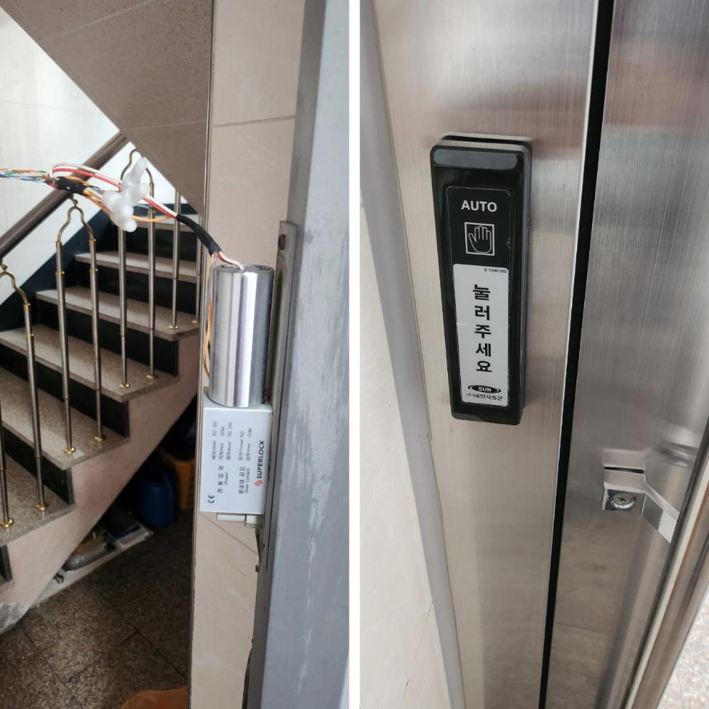 설치 후 문 여닫이감은 부드럽고, 도어 클로저 세팅도 안정적이었습니다. 보안장치 작동도 이상 없었고요. 무엇보다 입주민분들이 가장 만족하신 건 깔끔해진 외관이었습니다. 녹과 기스가 보이던 출입구가 단정한 스텐 도어로 바뀌며 건물 첫인상이 달라졌다는 피드백을 받았습니다.
