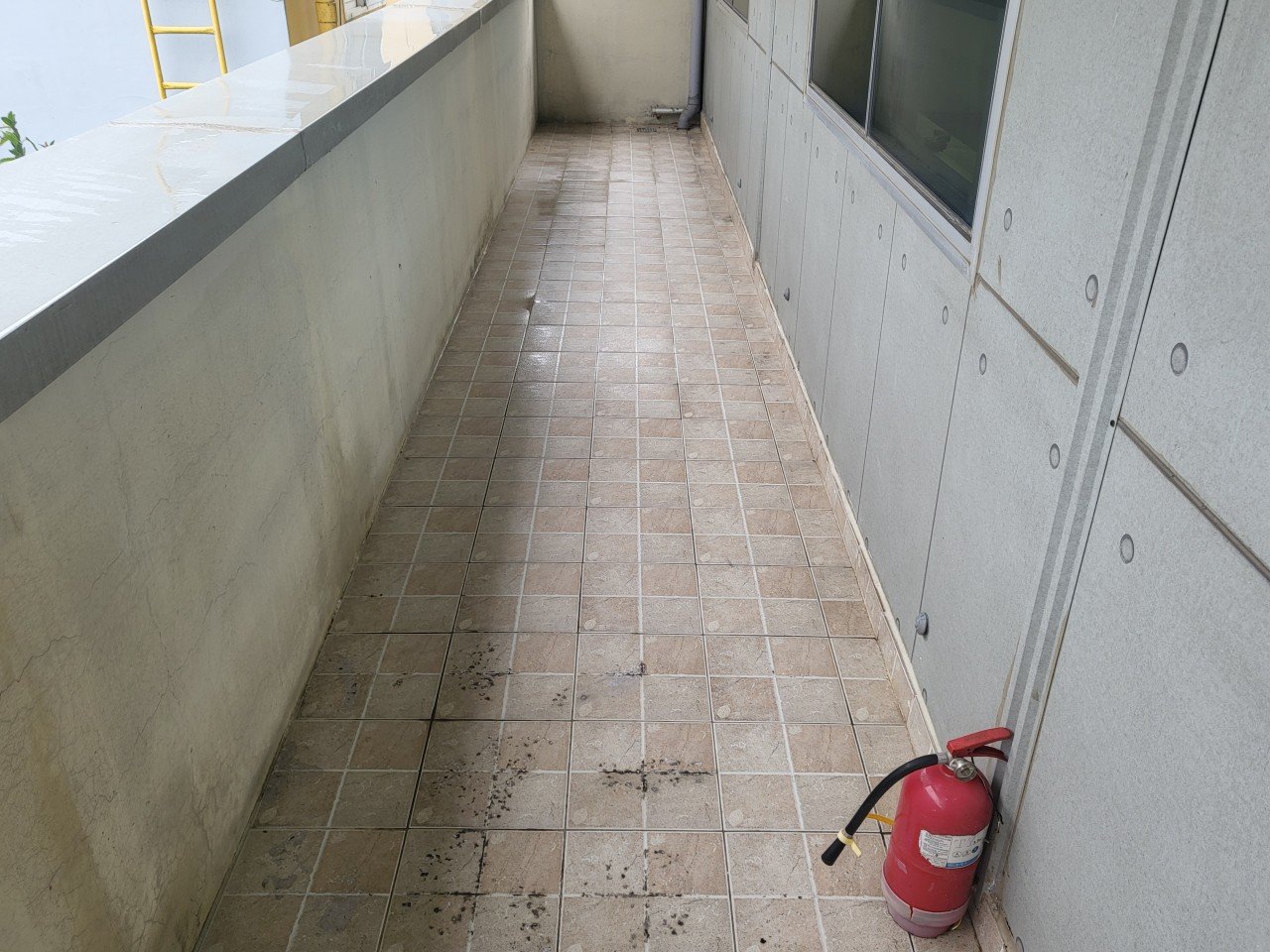 - 낙엽·흙먼지 수거 후, 타일 줄눈까지 전용 세제 도포·세척