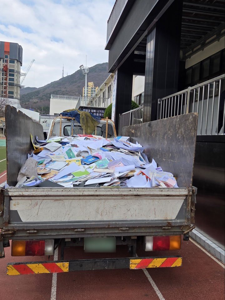 이번 글에서는 최근 진행했던 부산 지역 고등학교 교과서 수거 현장을 중심으로, 학교에서 대량 교과서를 안전하게 정리하는 방법과 동서자원이 작업을 진행하는 실제 흐름을 소개해보겠습니다.