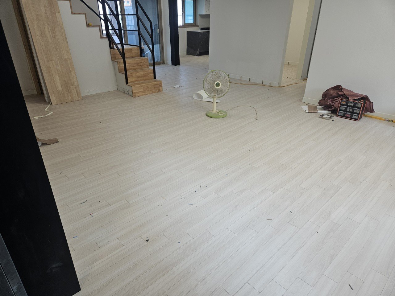- 대형 청소기로 바닥과 몰딩·틈새의 톱밥/분진을 충분히 흡입해 2차 오염을 최소화했습니다.